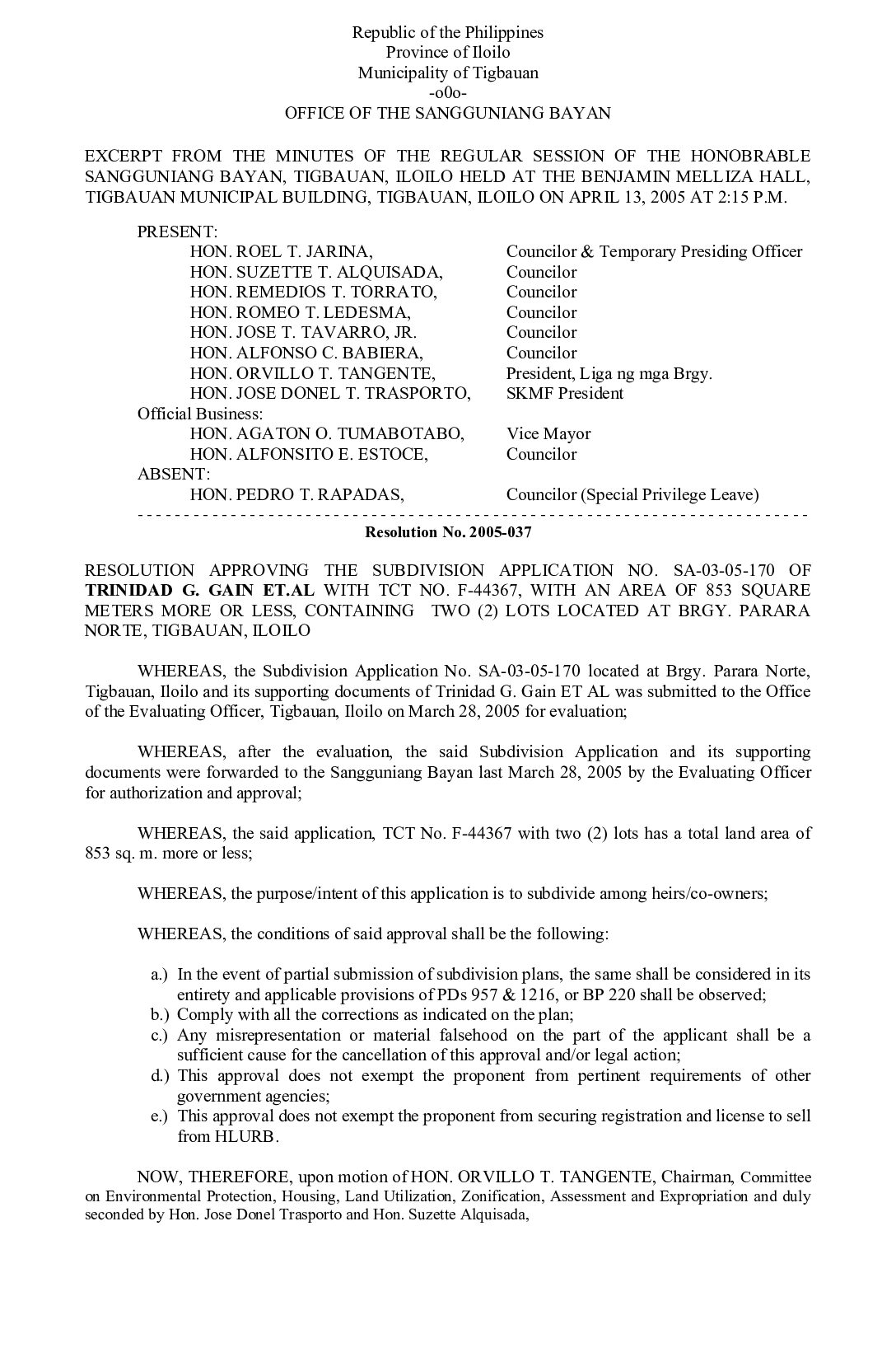Resolution No. 2005-037
