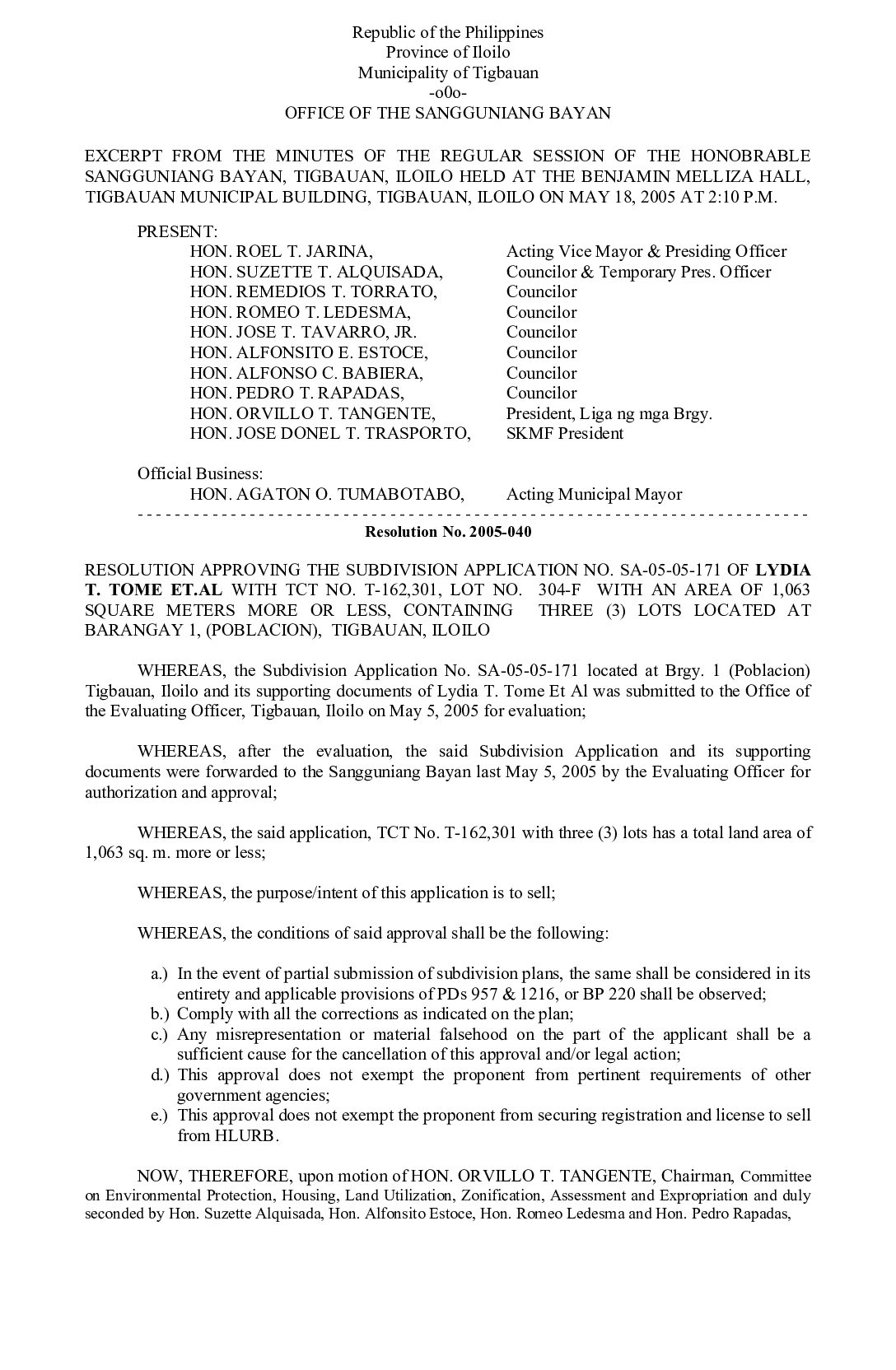 Resolution No. 2005-040