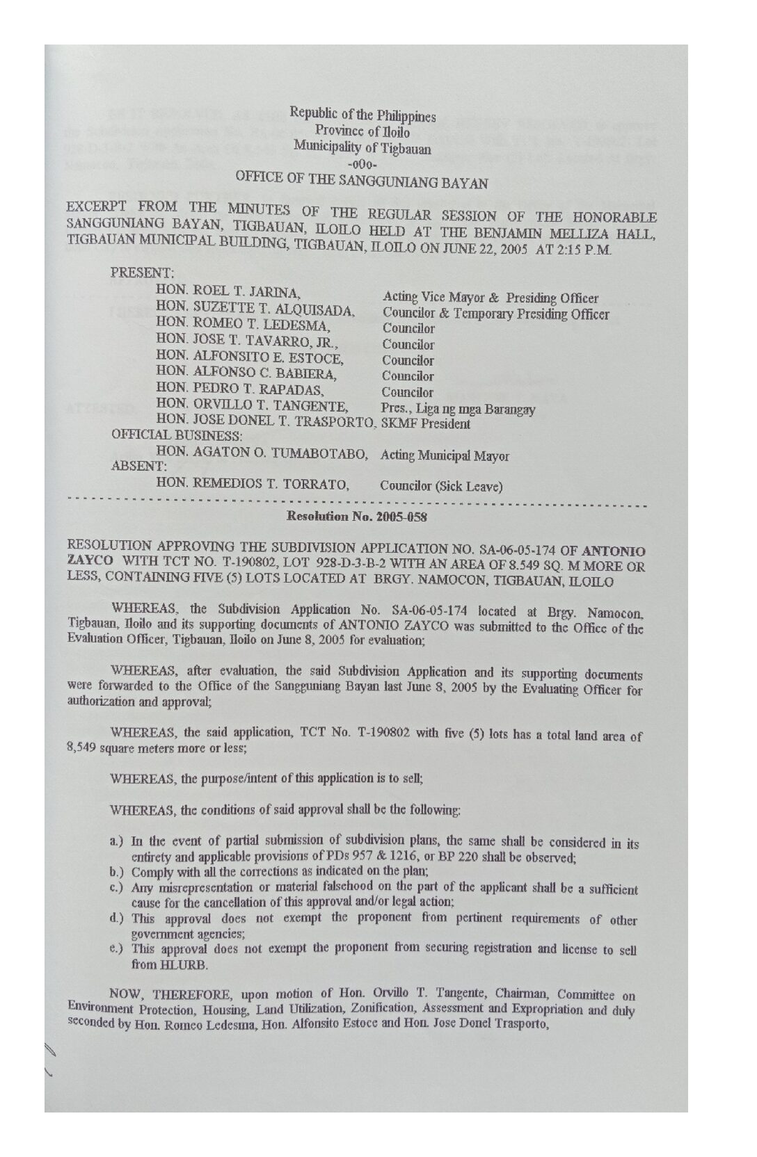 Resolution No. 2005-058