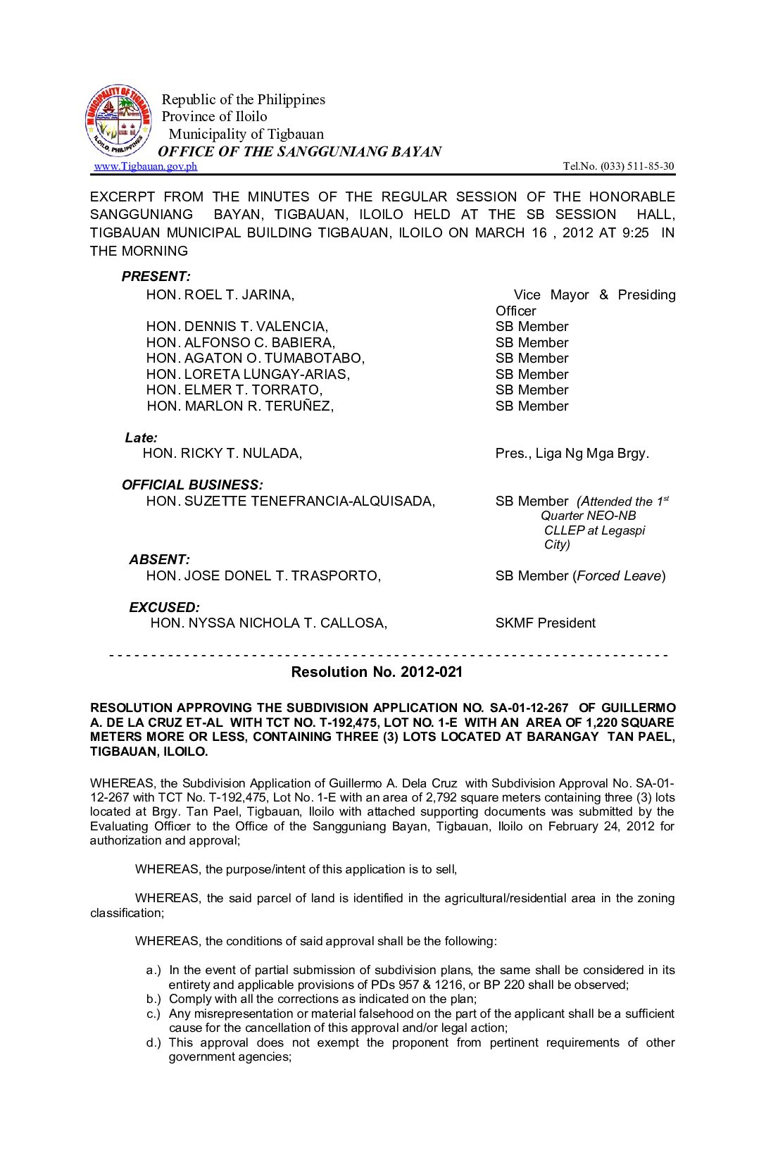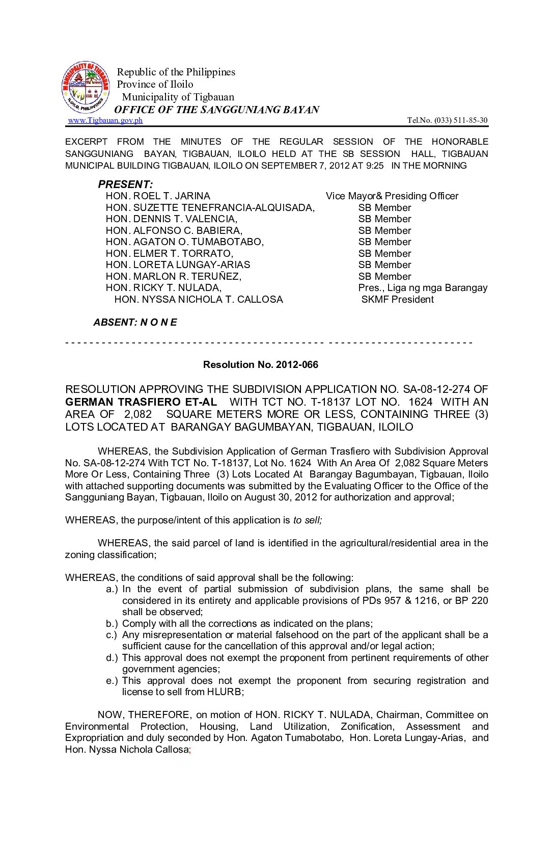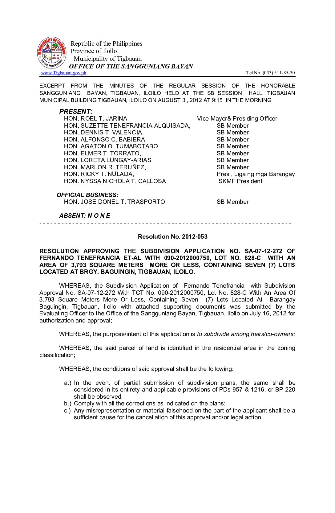 Resolution No. 2012-053