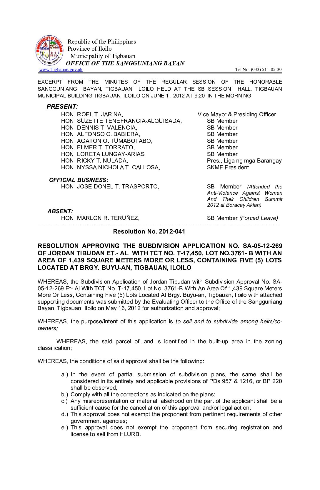 Resolution No. 2012-041