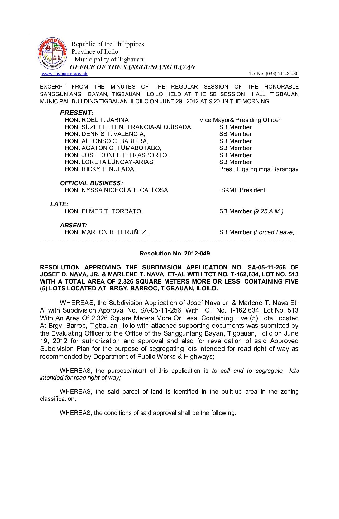 Resolution No. 2012-049