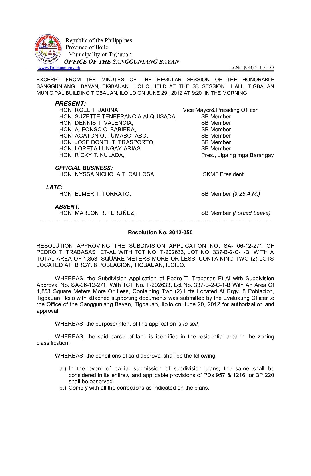 Resolution No. 2012-050