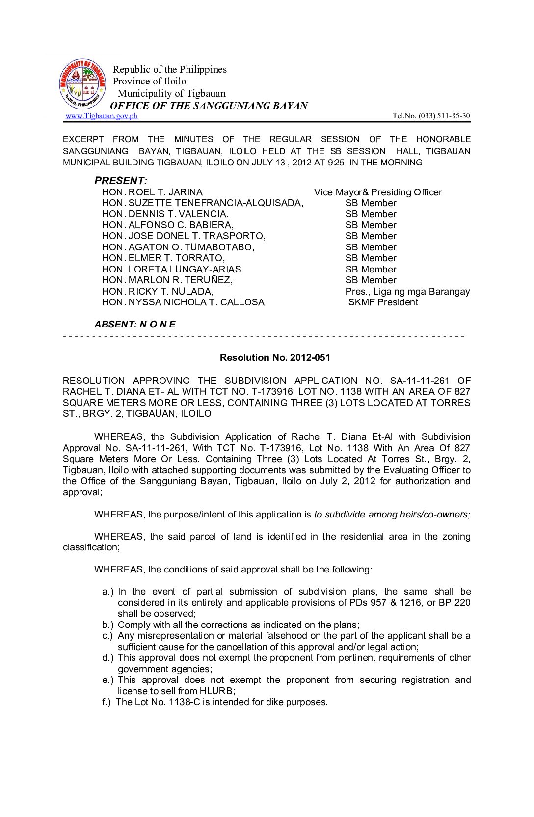 Resolution No. 2012-051