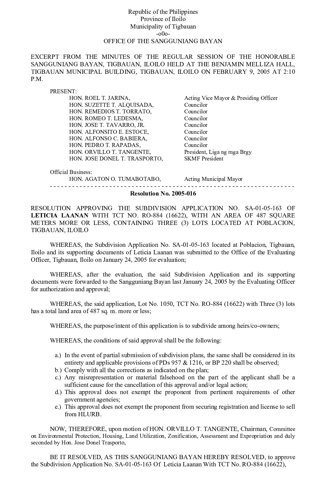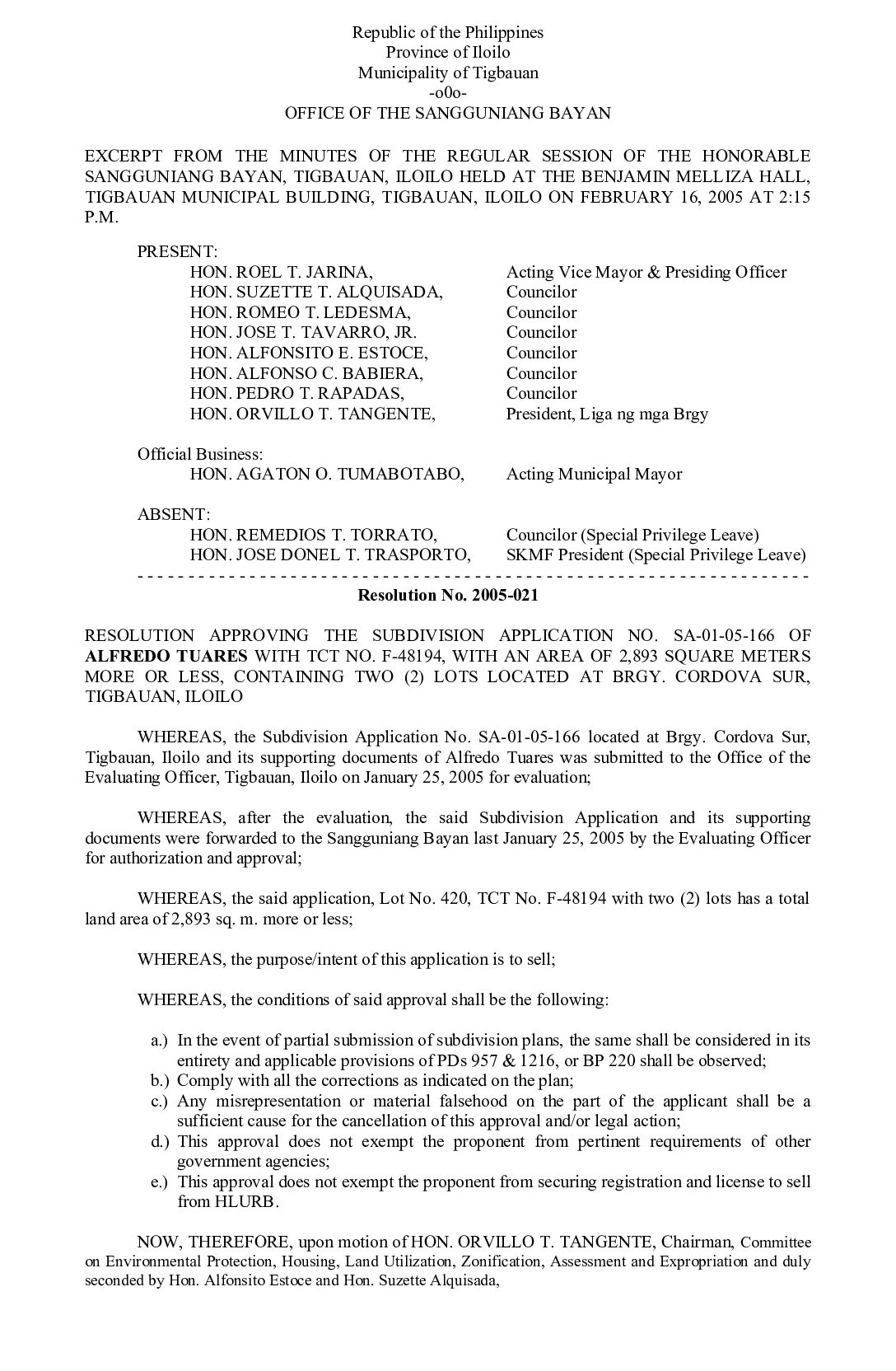 Resolution No. 2005-021