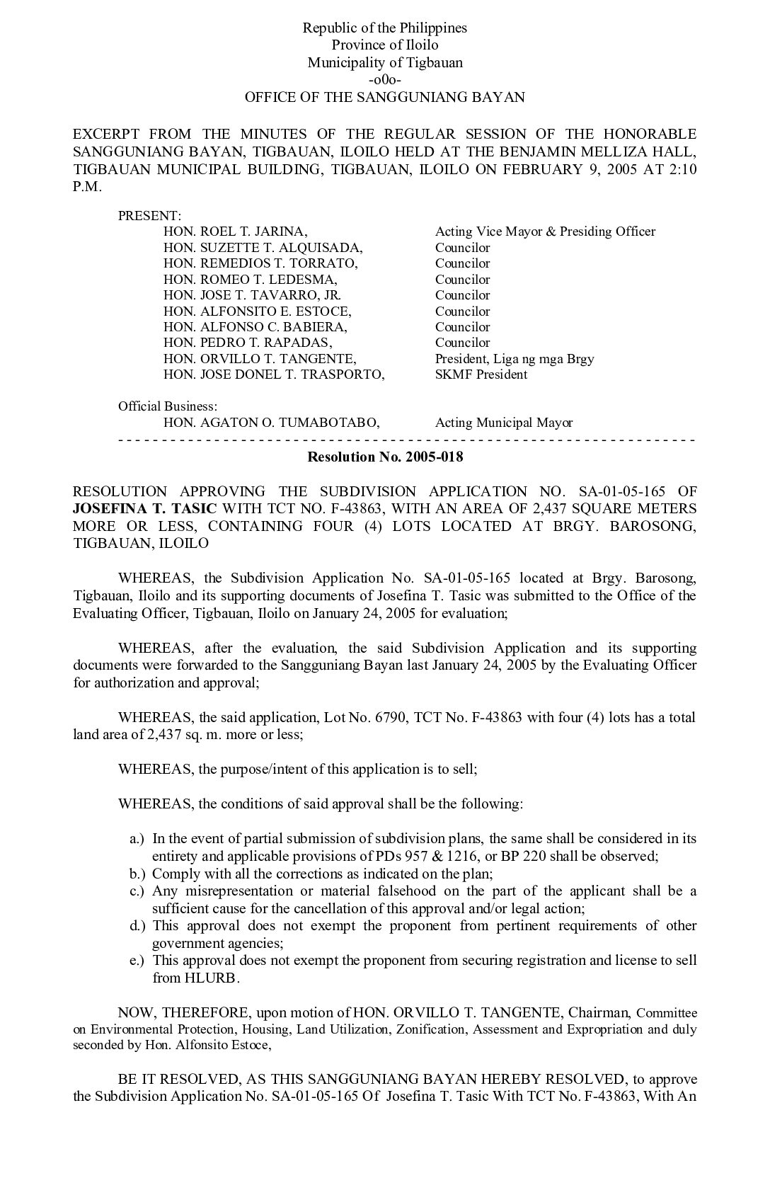 Resolution No. 2005-018