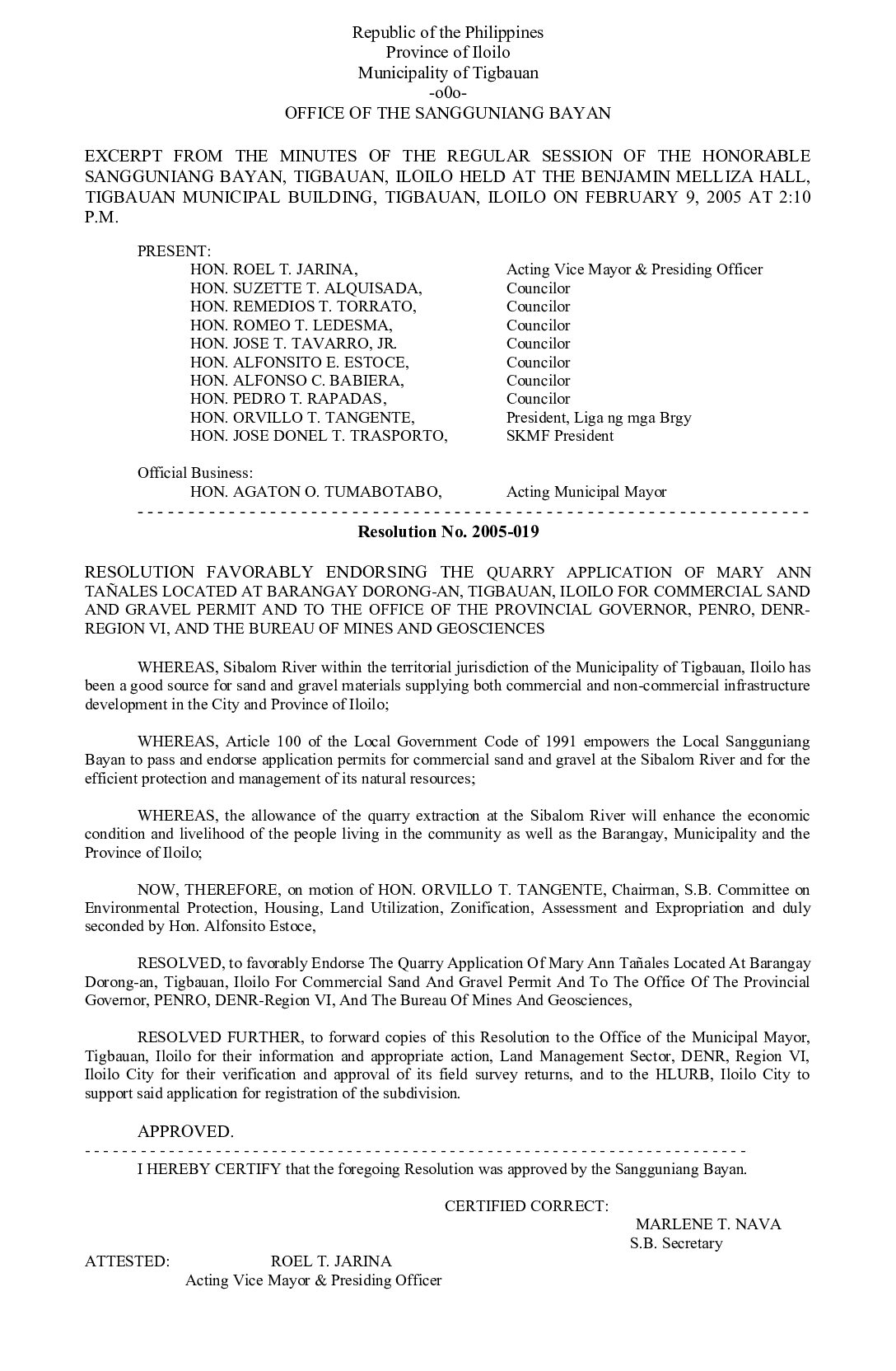 Resolution No. 2005-019