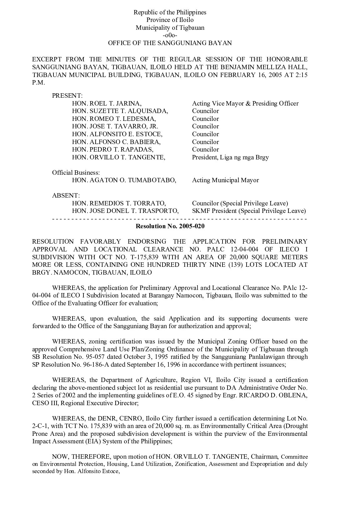 Resolution No. 2005-020