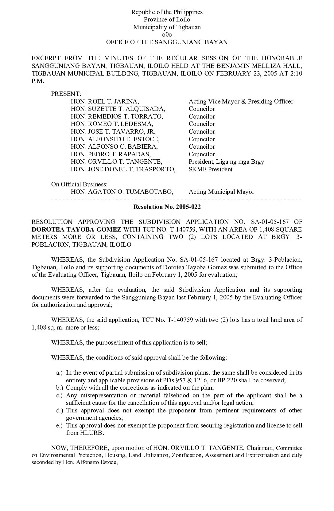 Resolution No. 2005-022