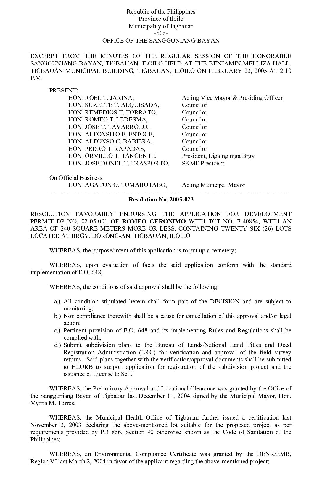 Resolution No. 2005-023