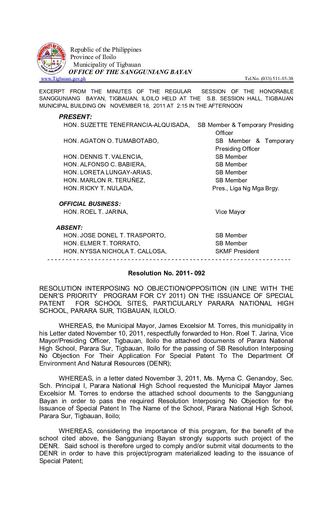 Resolution No. 2011-092