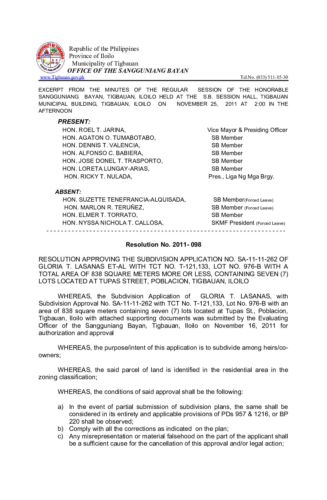 Resolution No. 2011-098