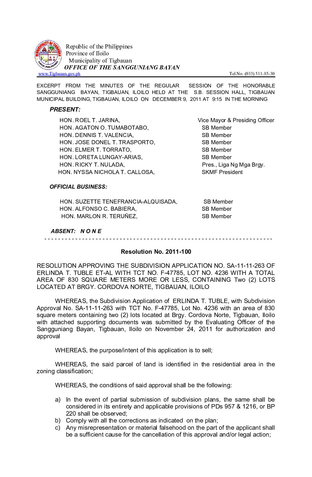 Resolution No. 2011-100