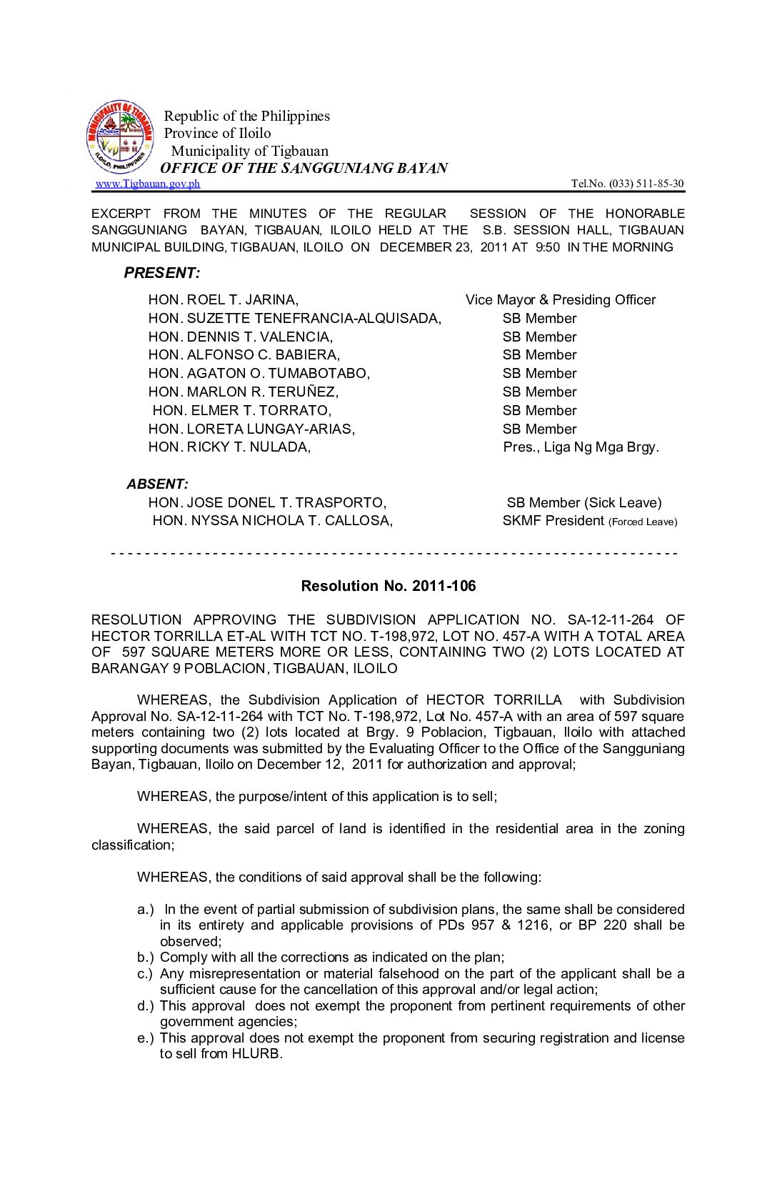 Resolution No. 2011-106