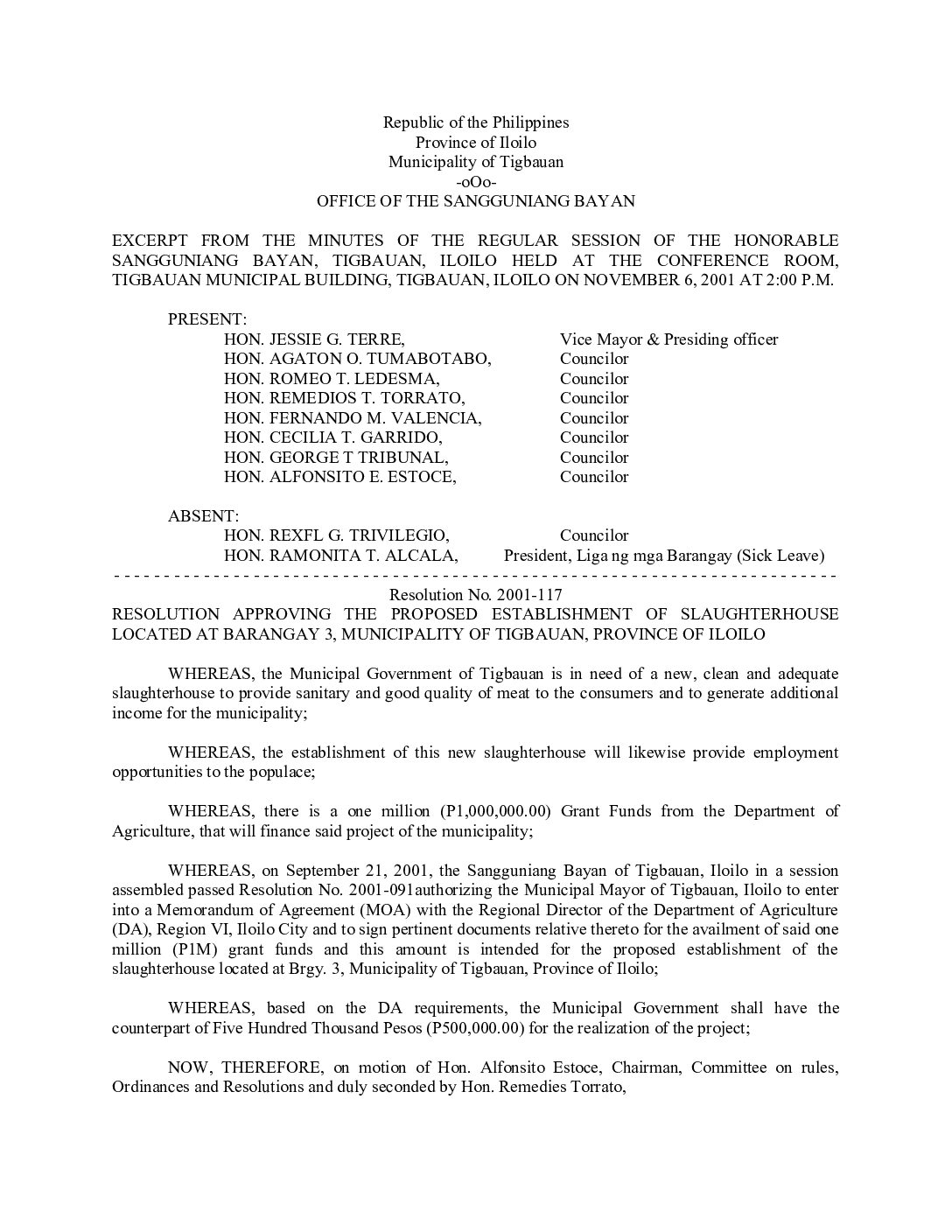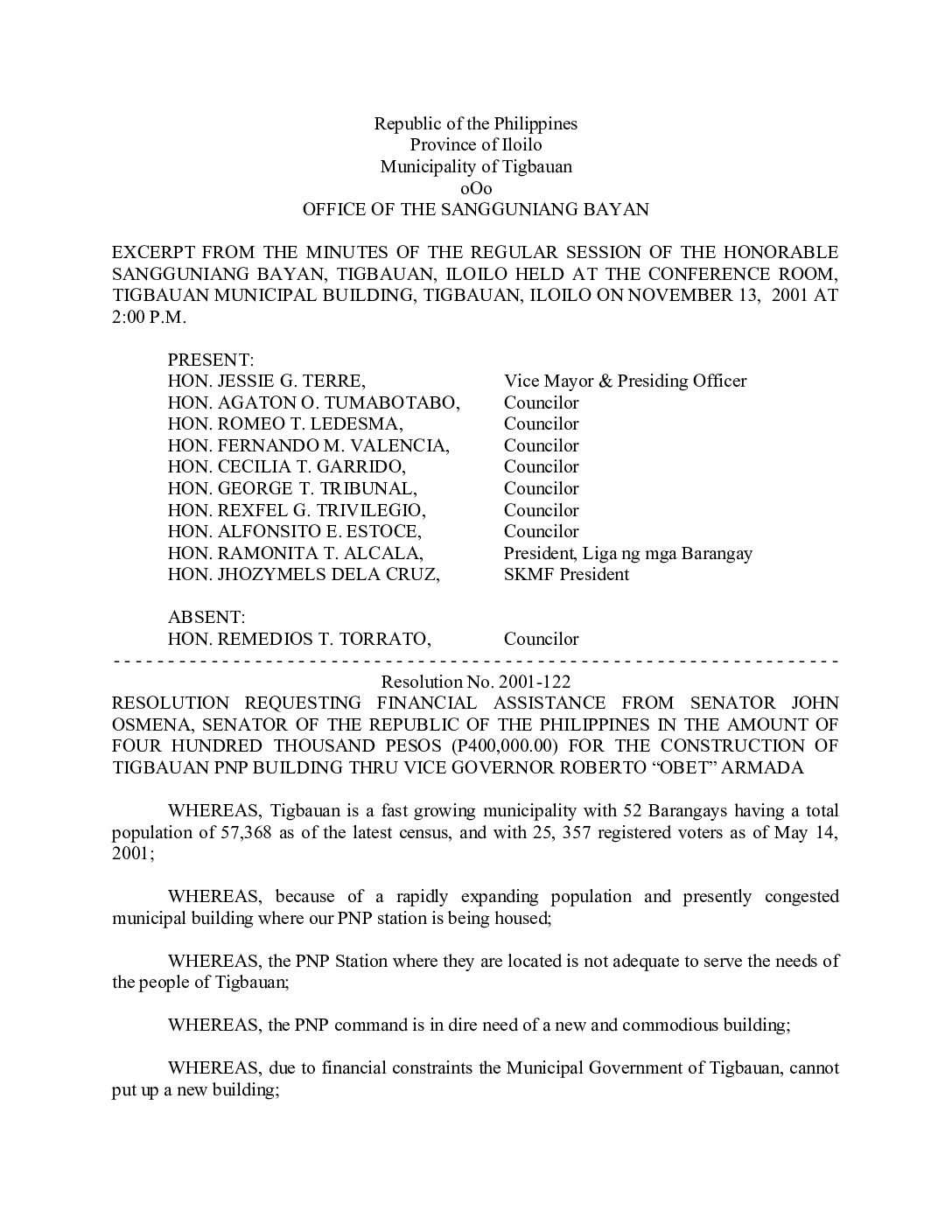 Resolution No. 2001-122