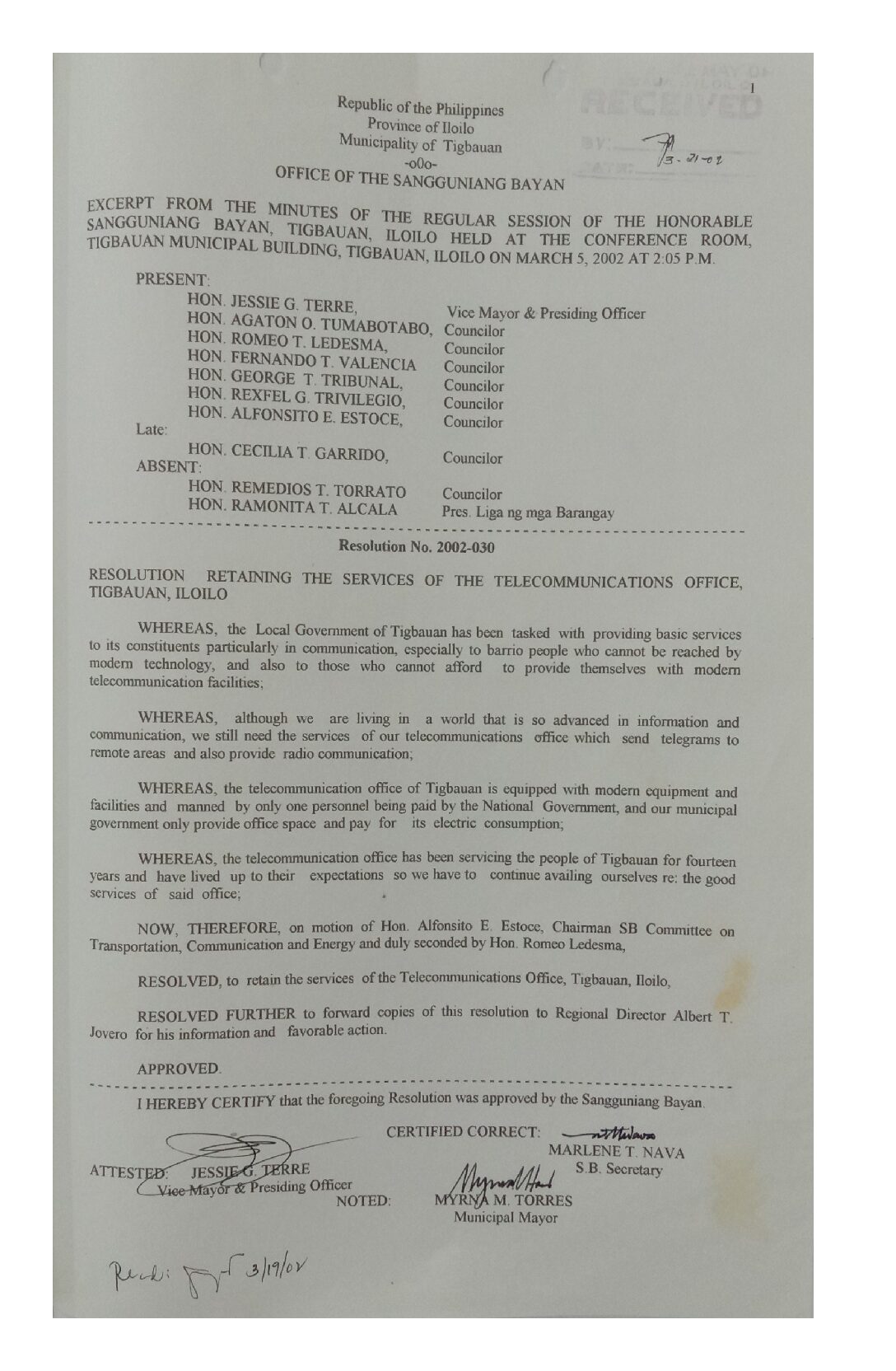 Resolution No. 2002-030