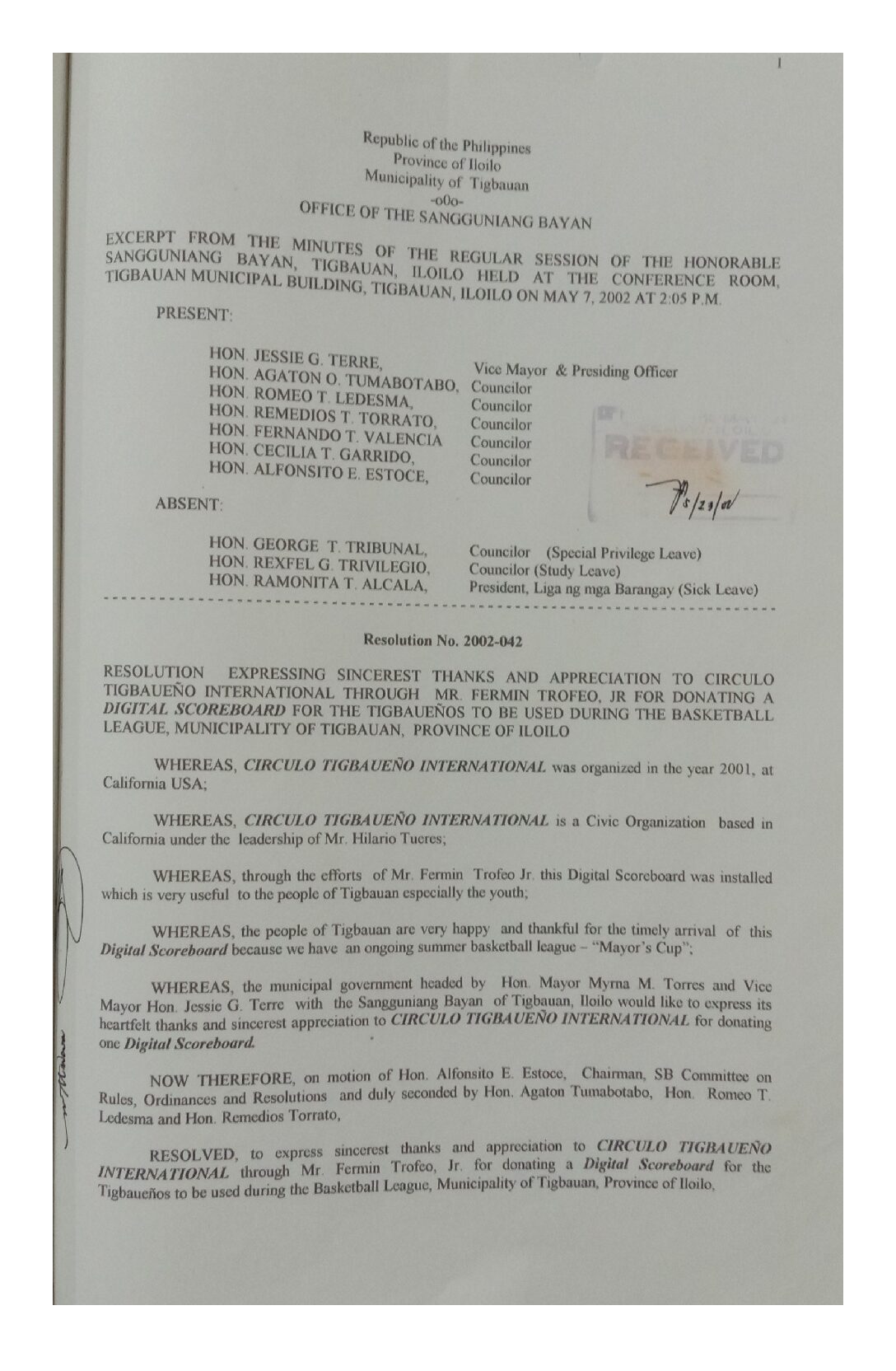 Resolution No. 2002-042