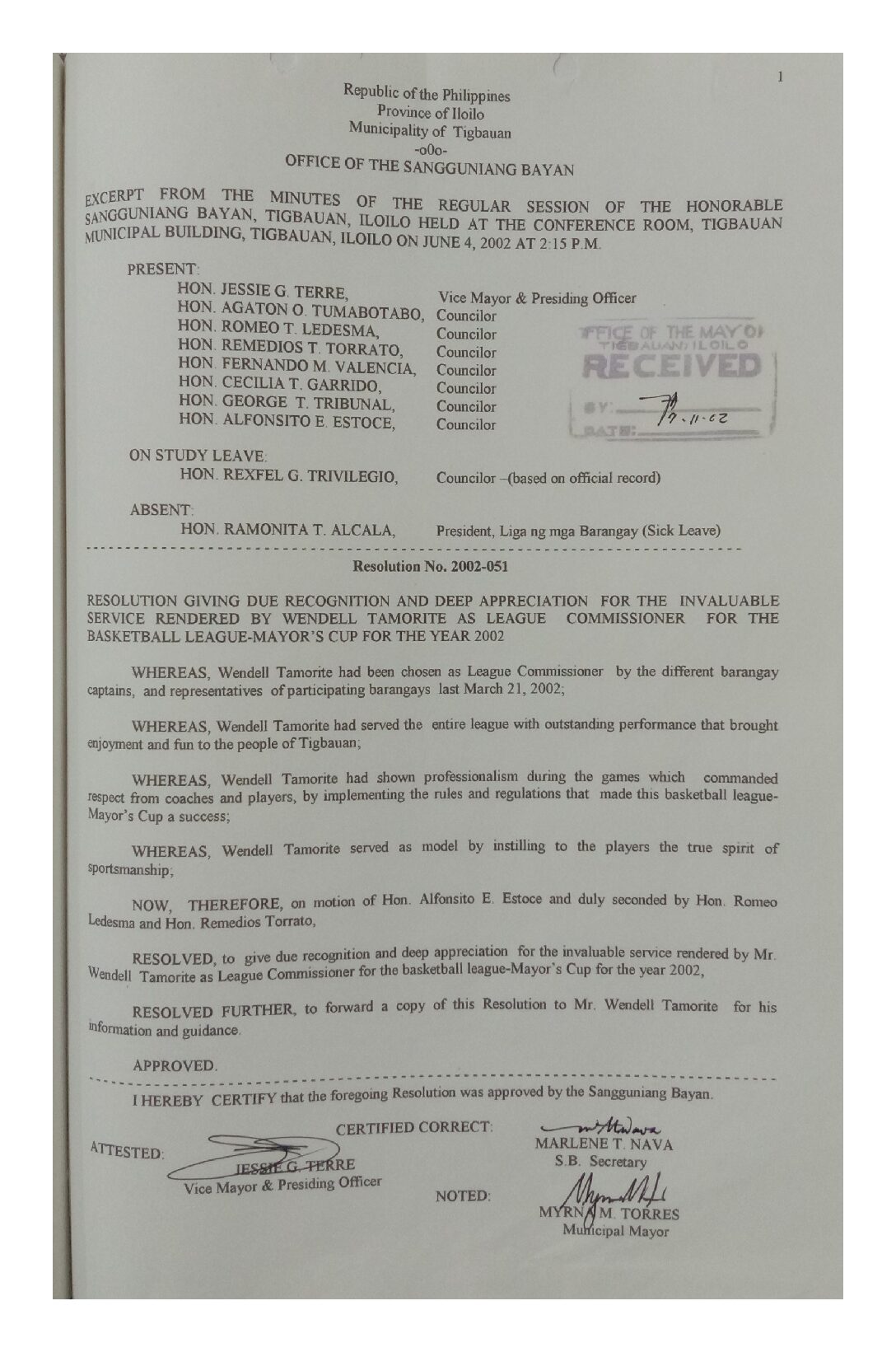 Resolution No. 2002-051