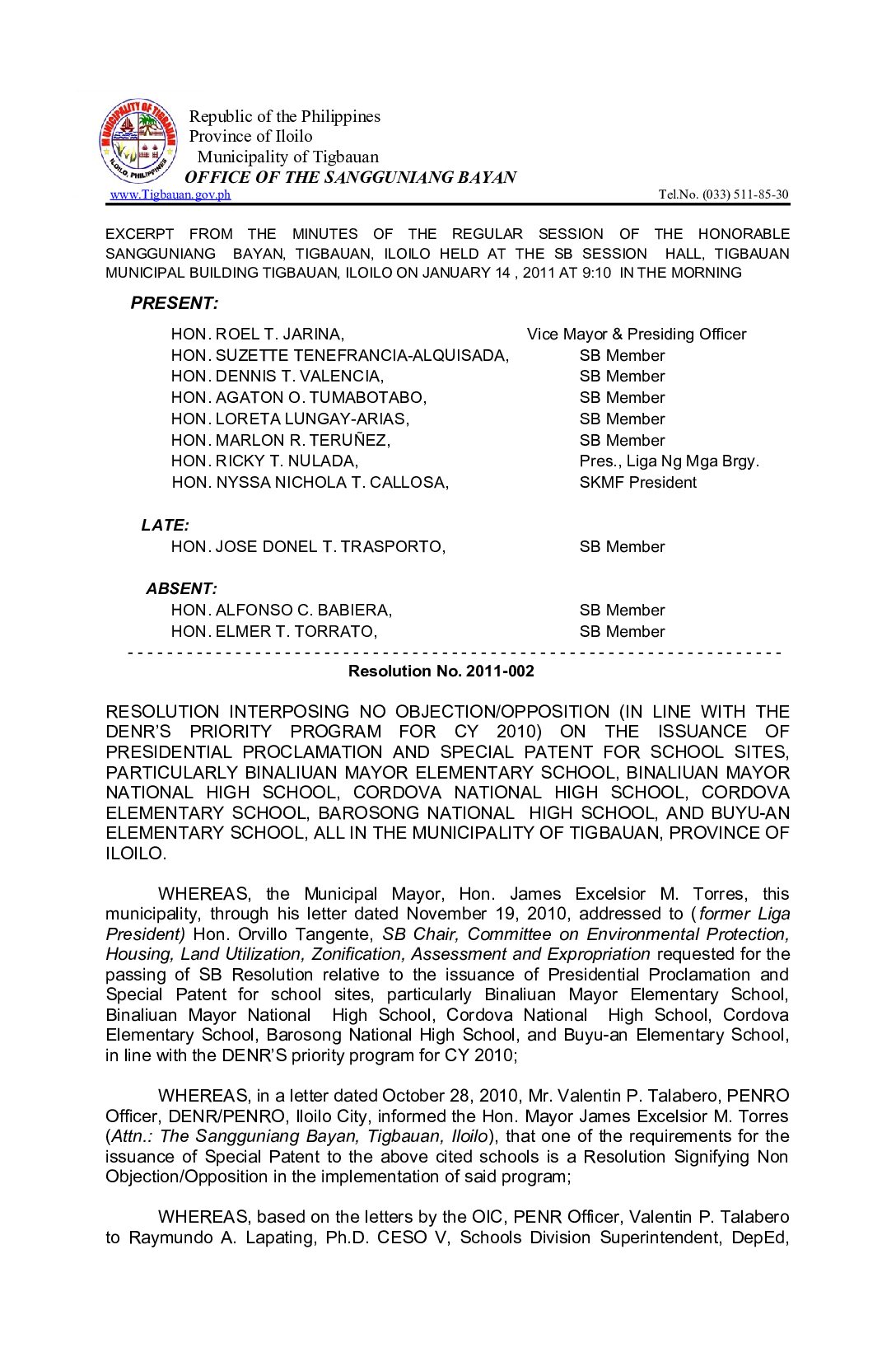 Resolution No. 2011-002