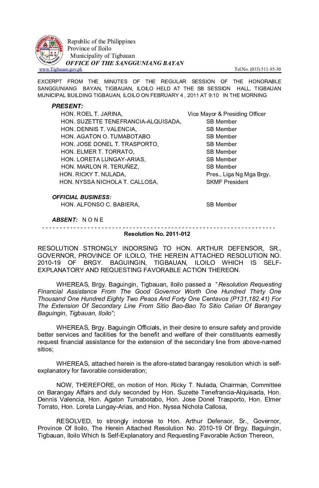 Resolution No. 2011-012