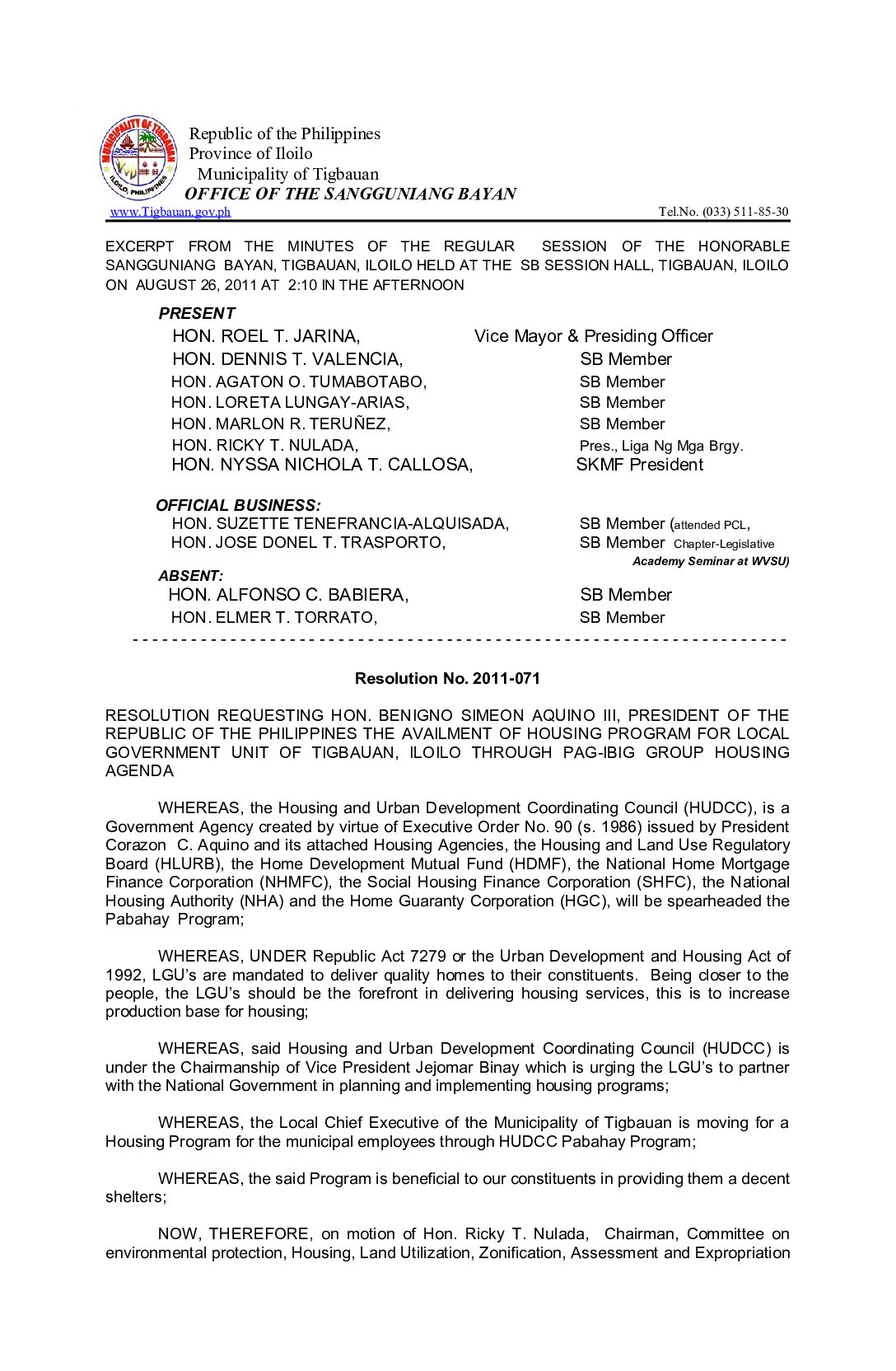 Resolution No. 2011-071