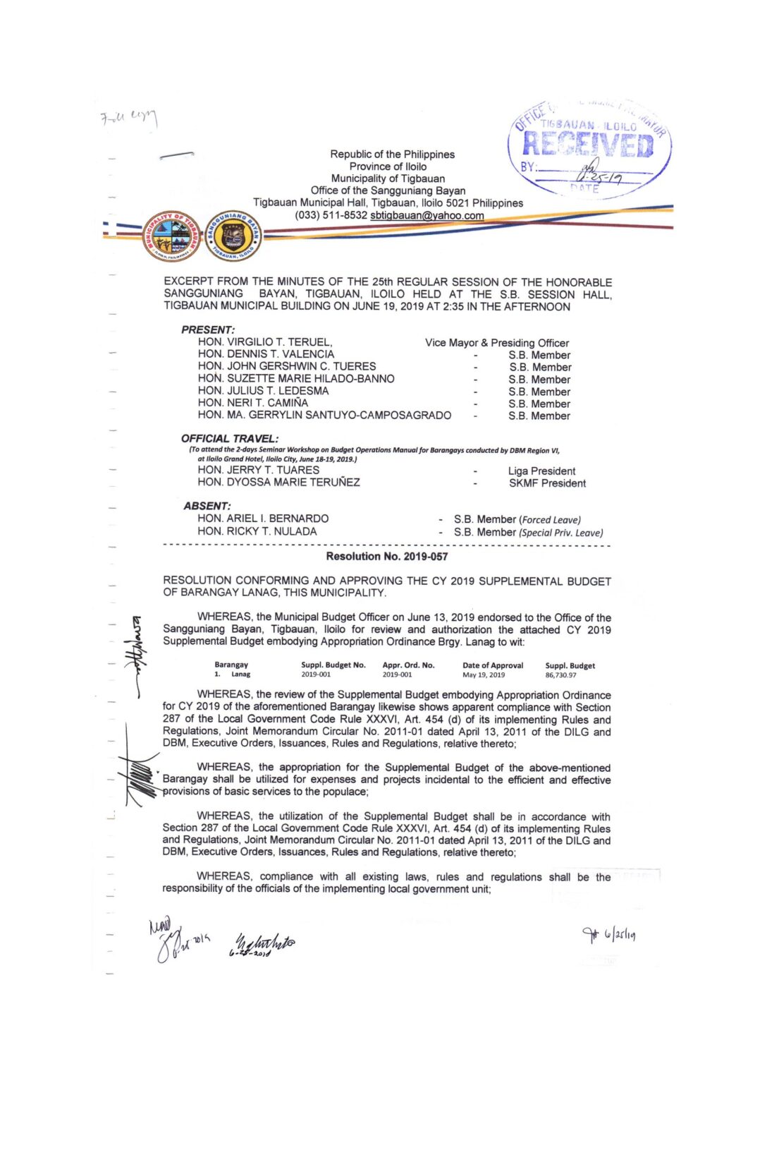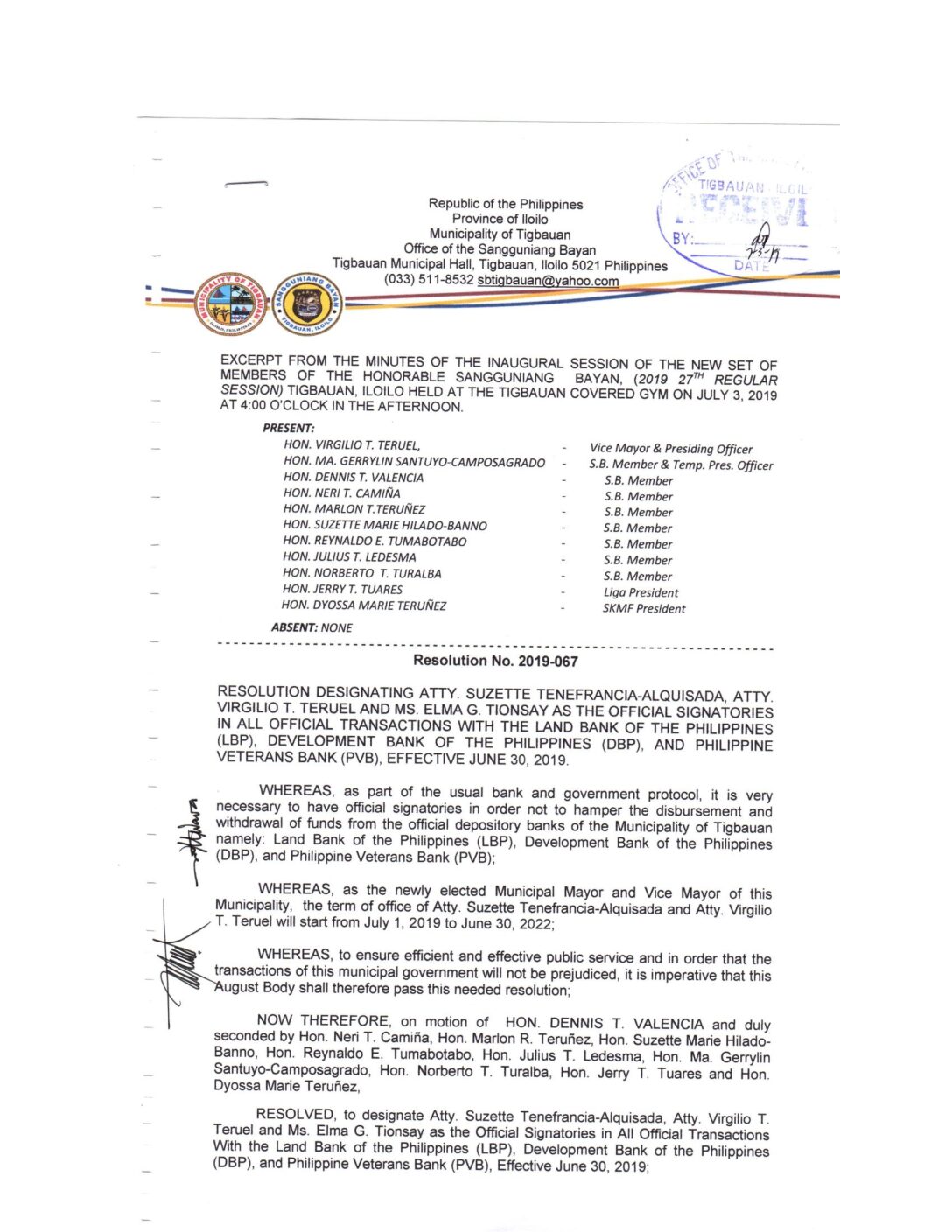 Resolution No. 2019-067