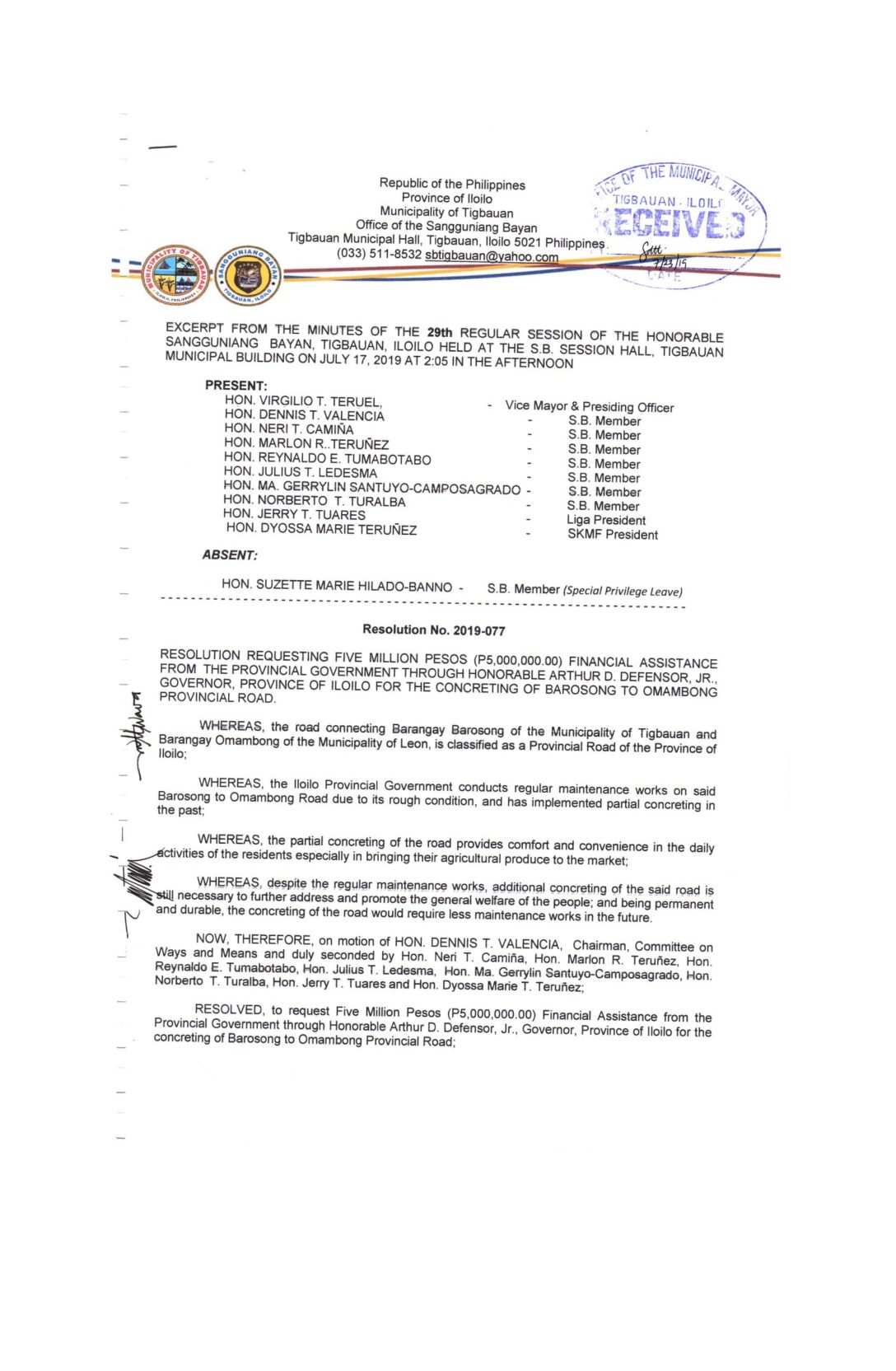 Resolution No. 2019-077