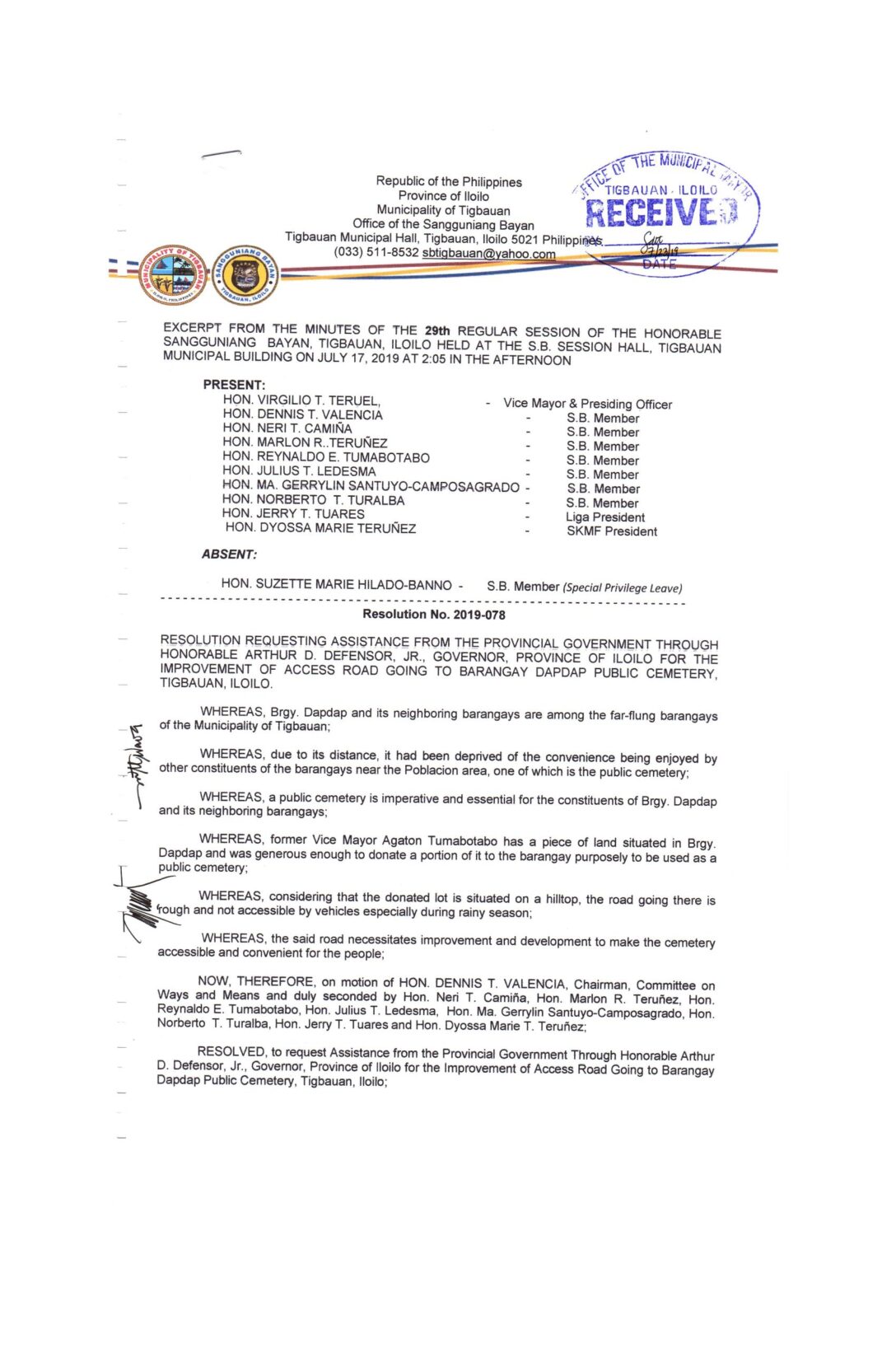 Resolution No. 2019-078