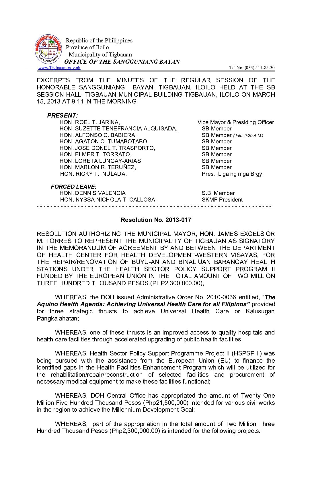 Resolution No. 2013-017