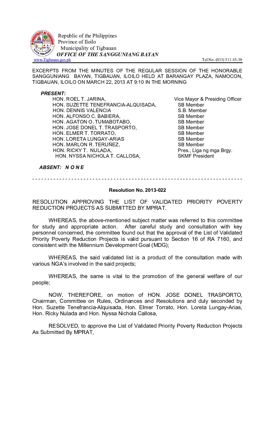Resolution No. 2013-022