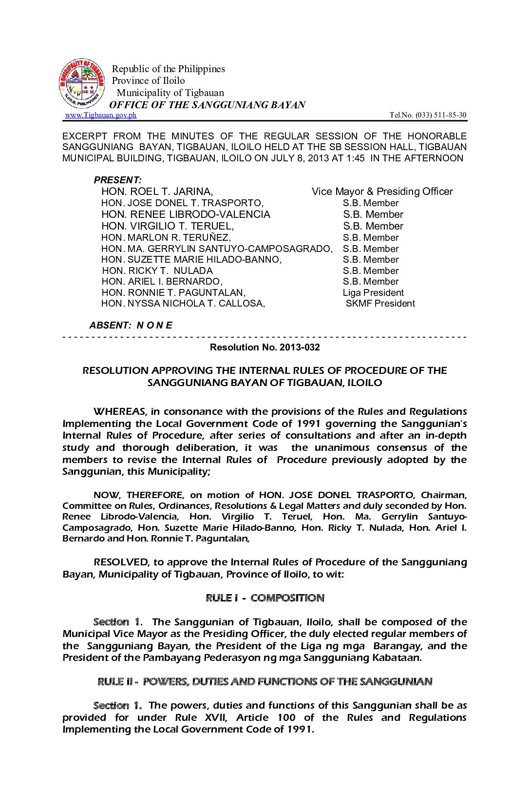 Resolution No. 2013-032