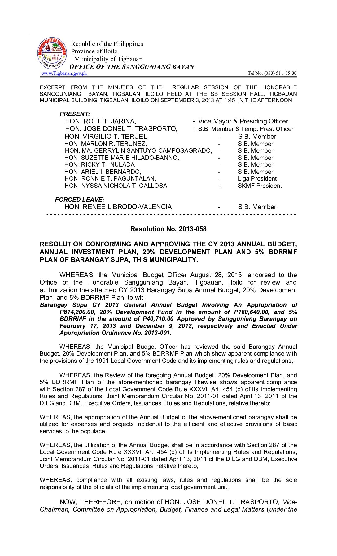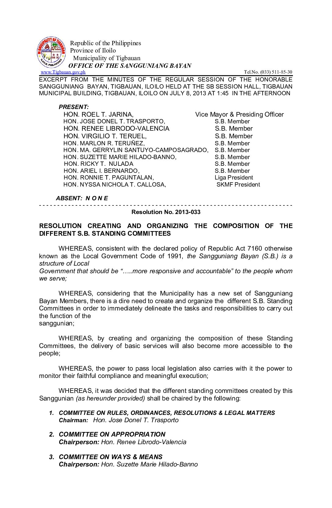 Resolution No. 2013-033