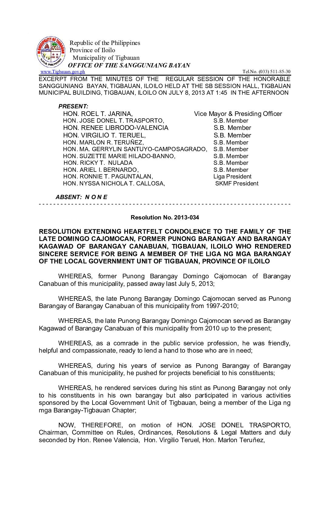 Resolution No. 2013-034