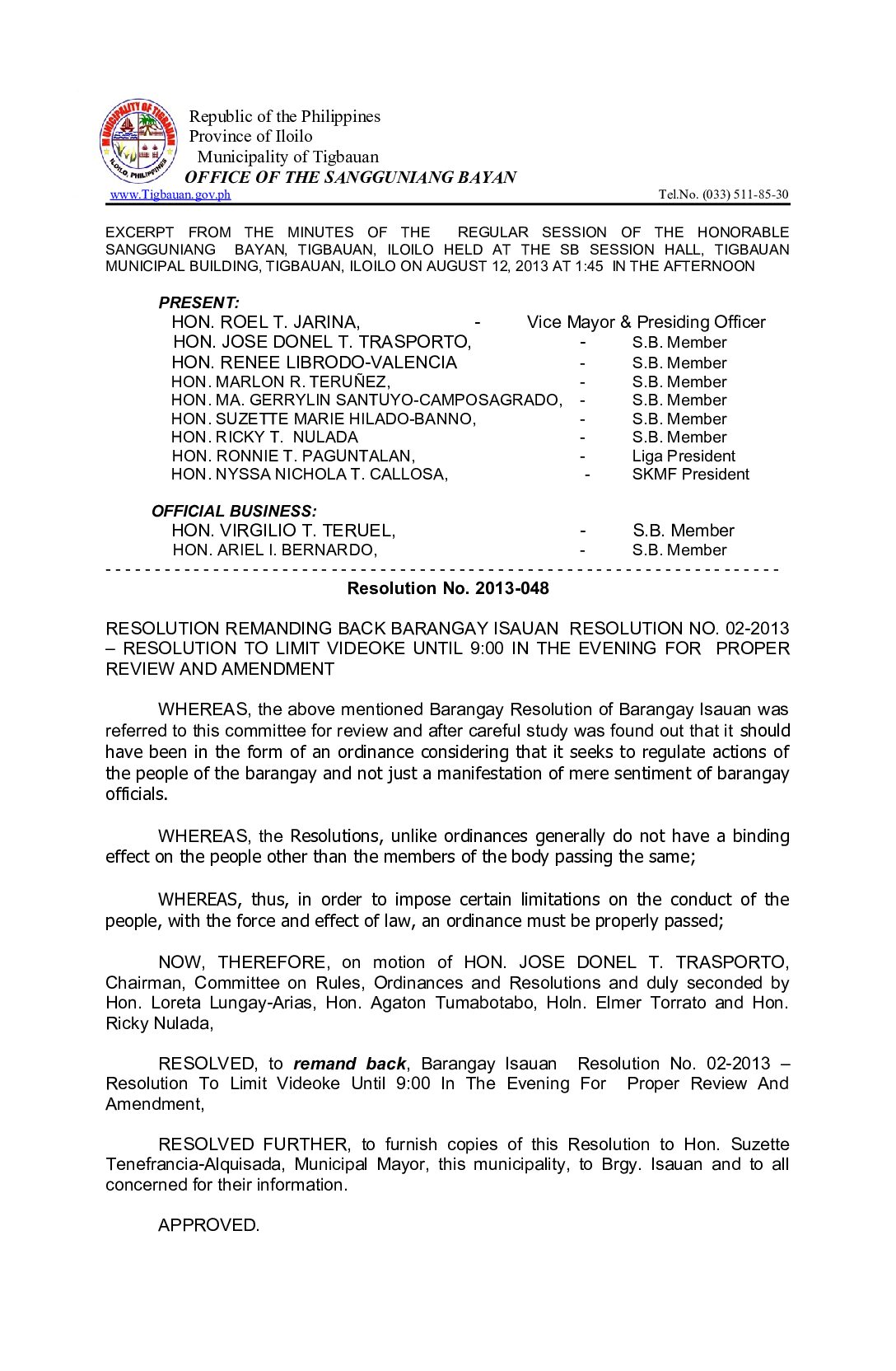 Resolution No. 2013-048