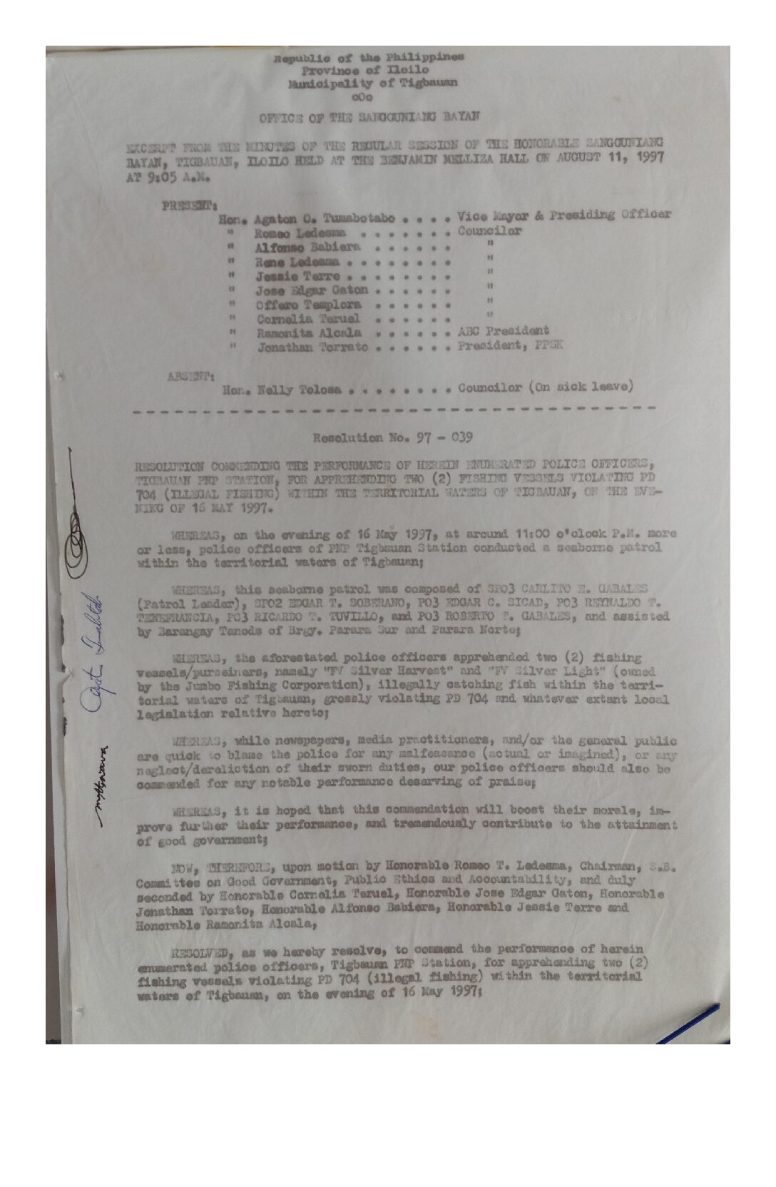 Resolution No. 97-039