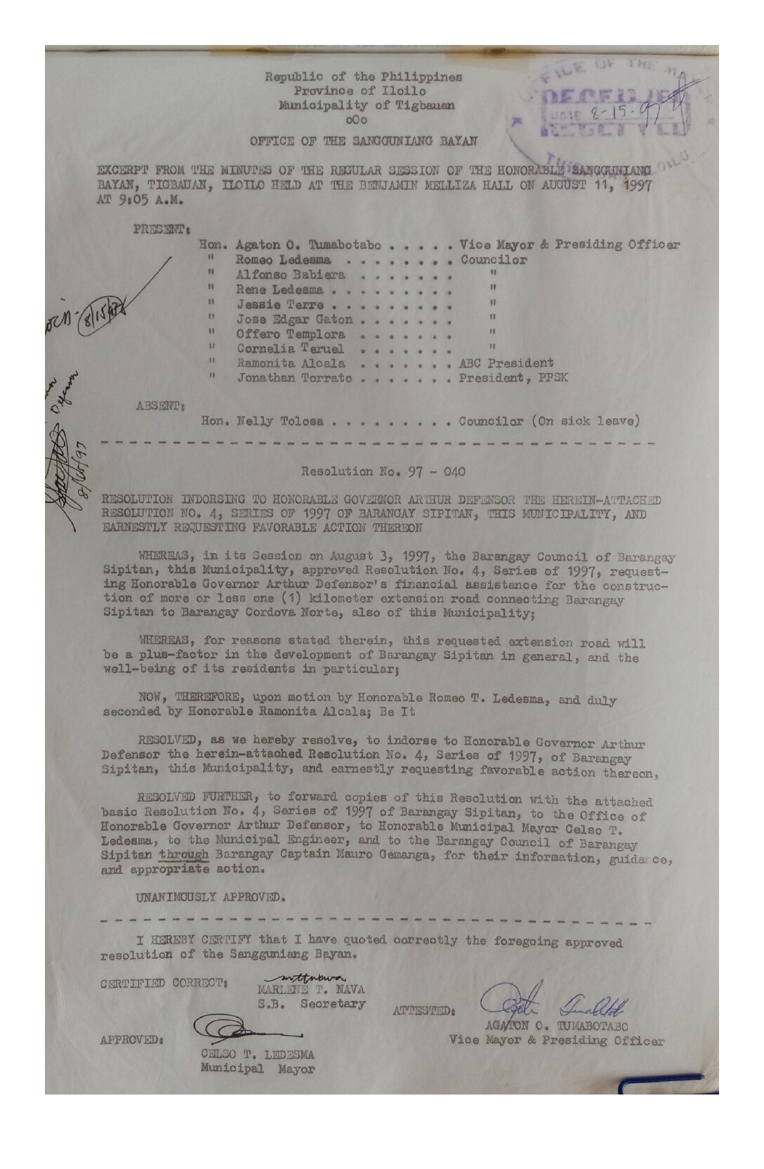 Resolution No. 97-040
