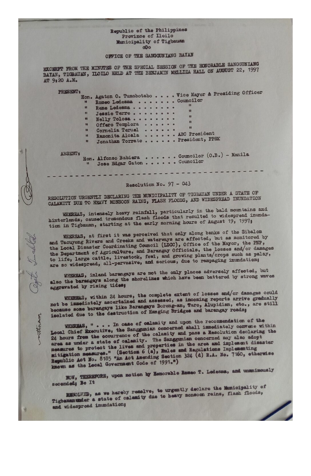 Resolution No. 97-043