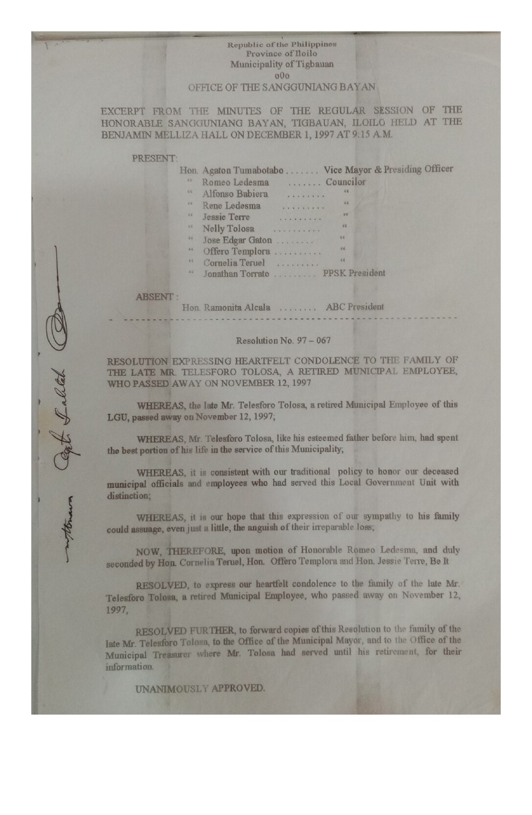 Resolution No. 97-067