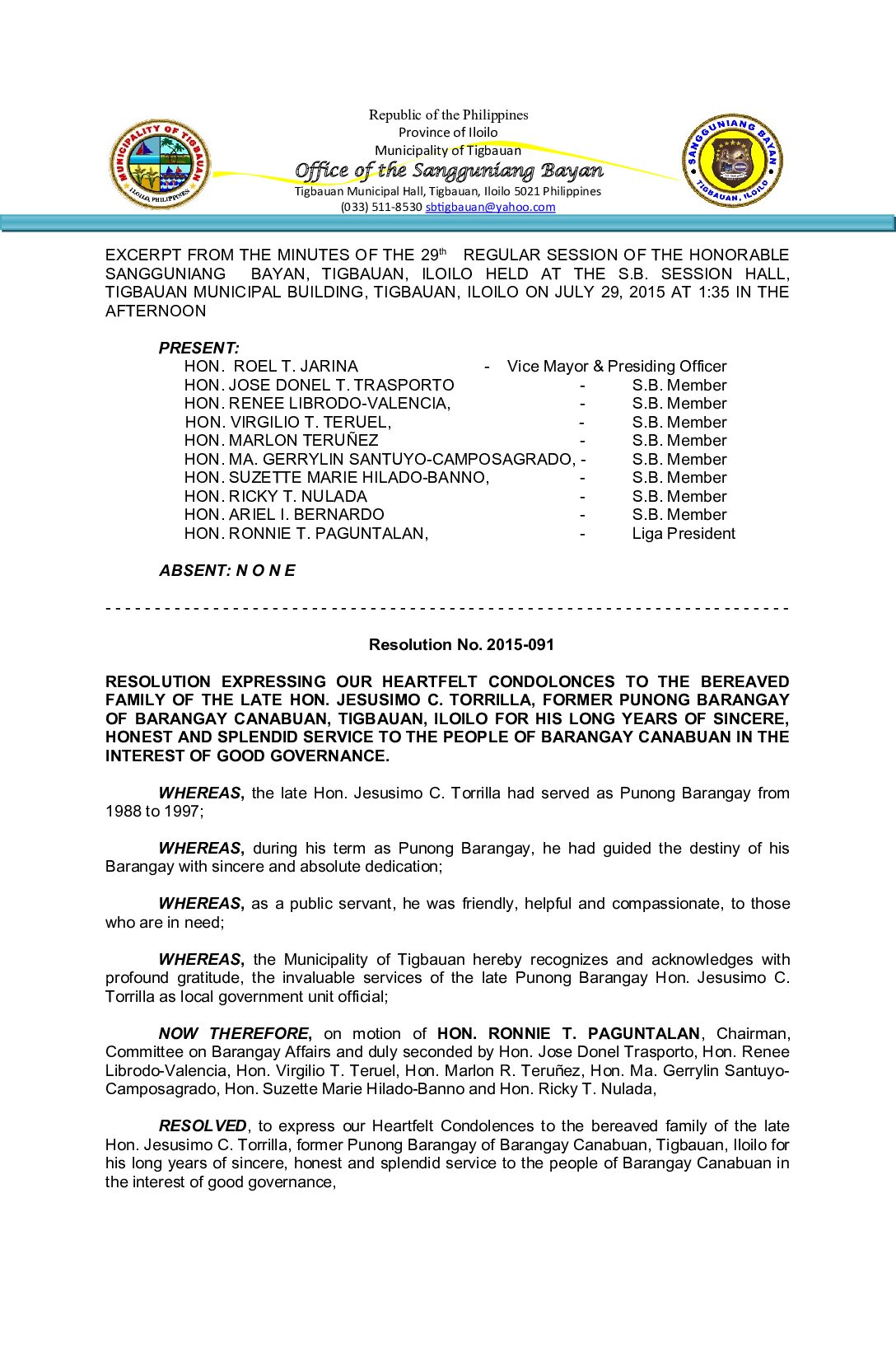 Resolution No. 2015-091