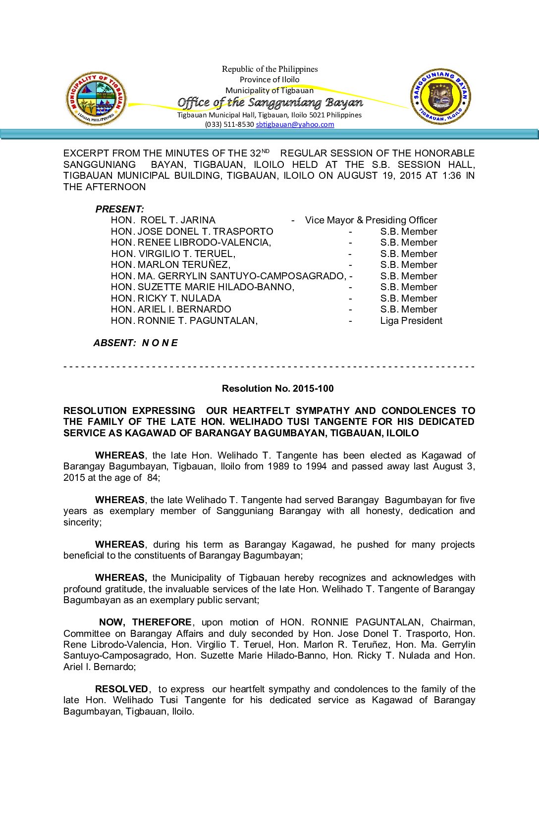 Resolution No. 2015-100