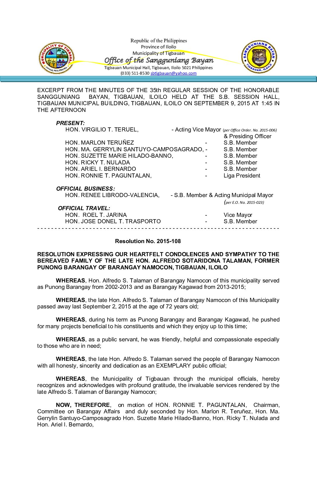 Resolution No. 2015-108