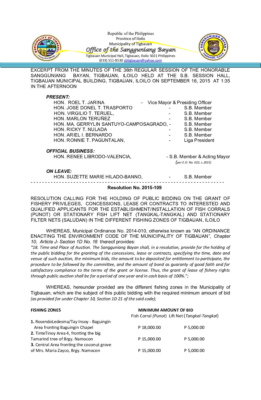 Resolution No. 2015-109