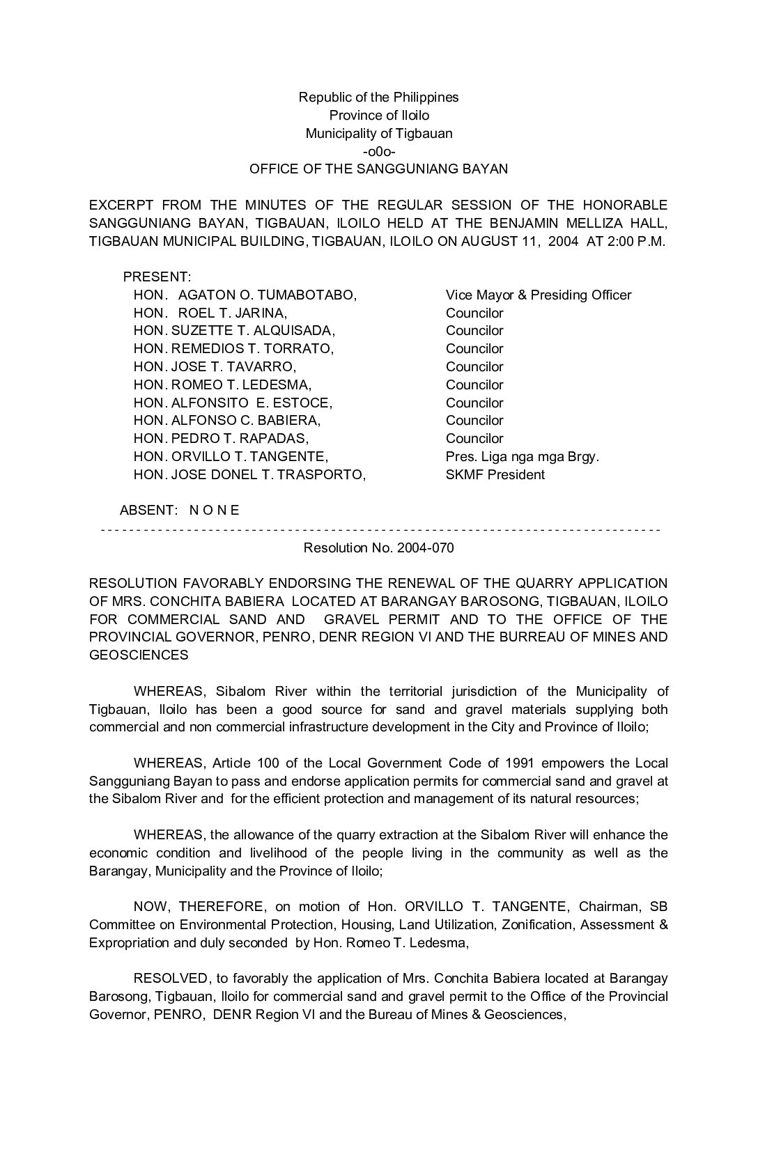 Resolution No. 2004-070