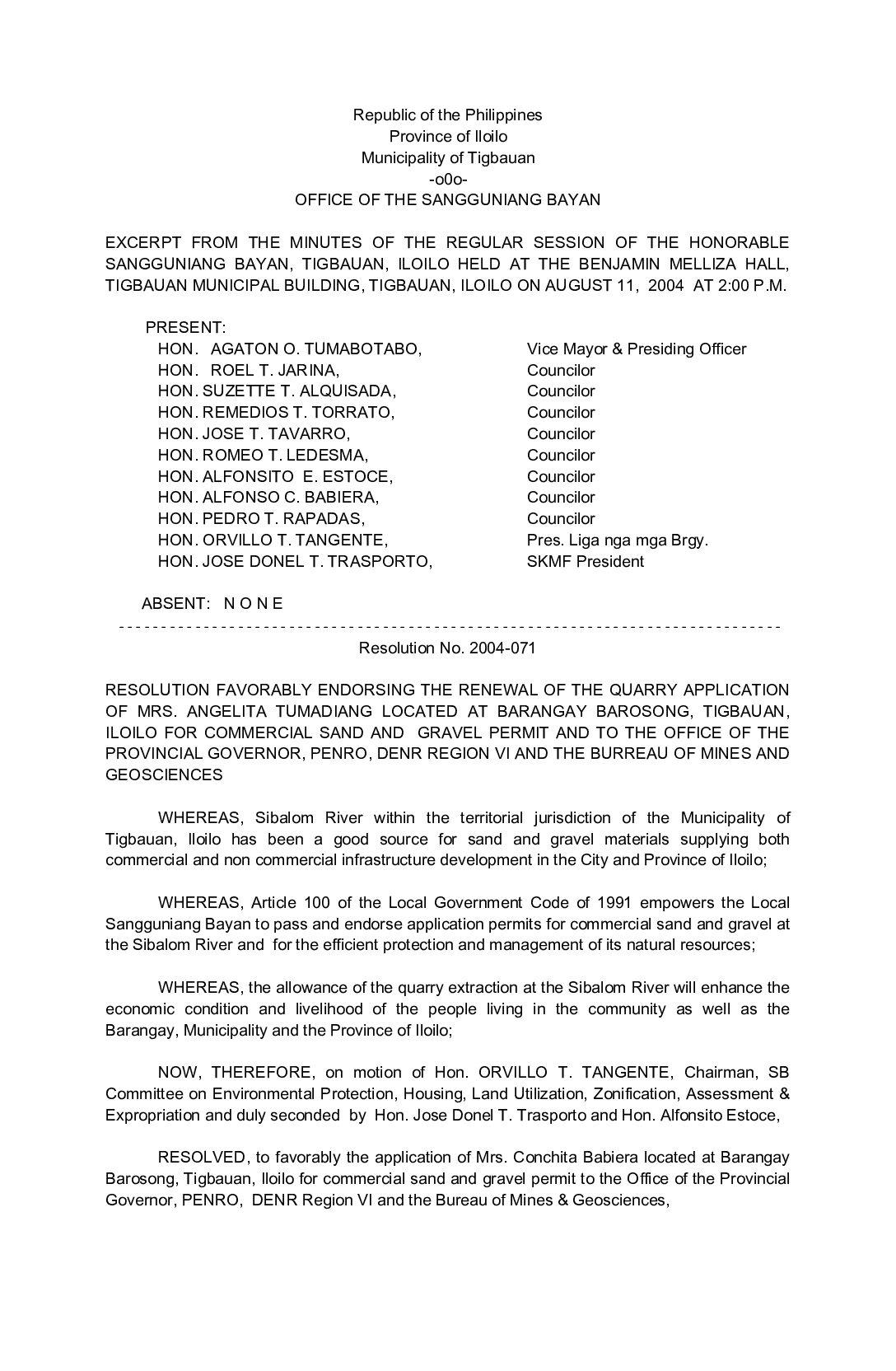 Resolution No. 2004-071