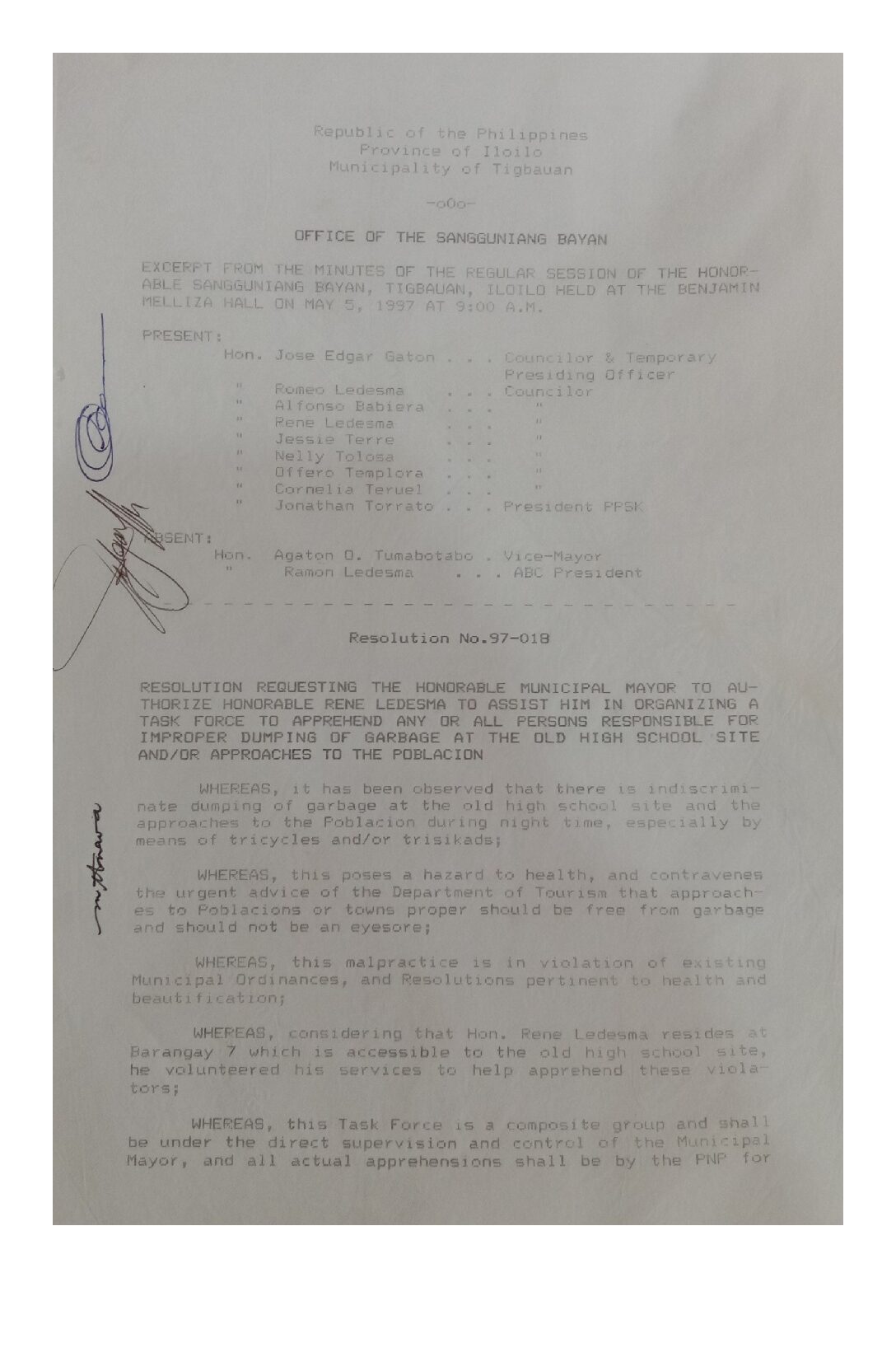 Resolution No. 97-018