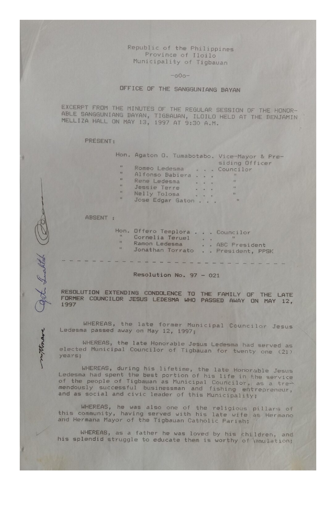 Resolution No. 97-021