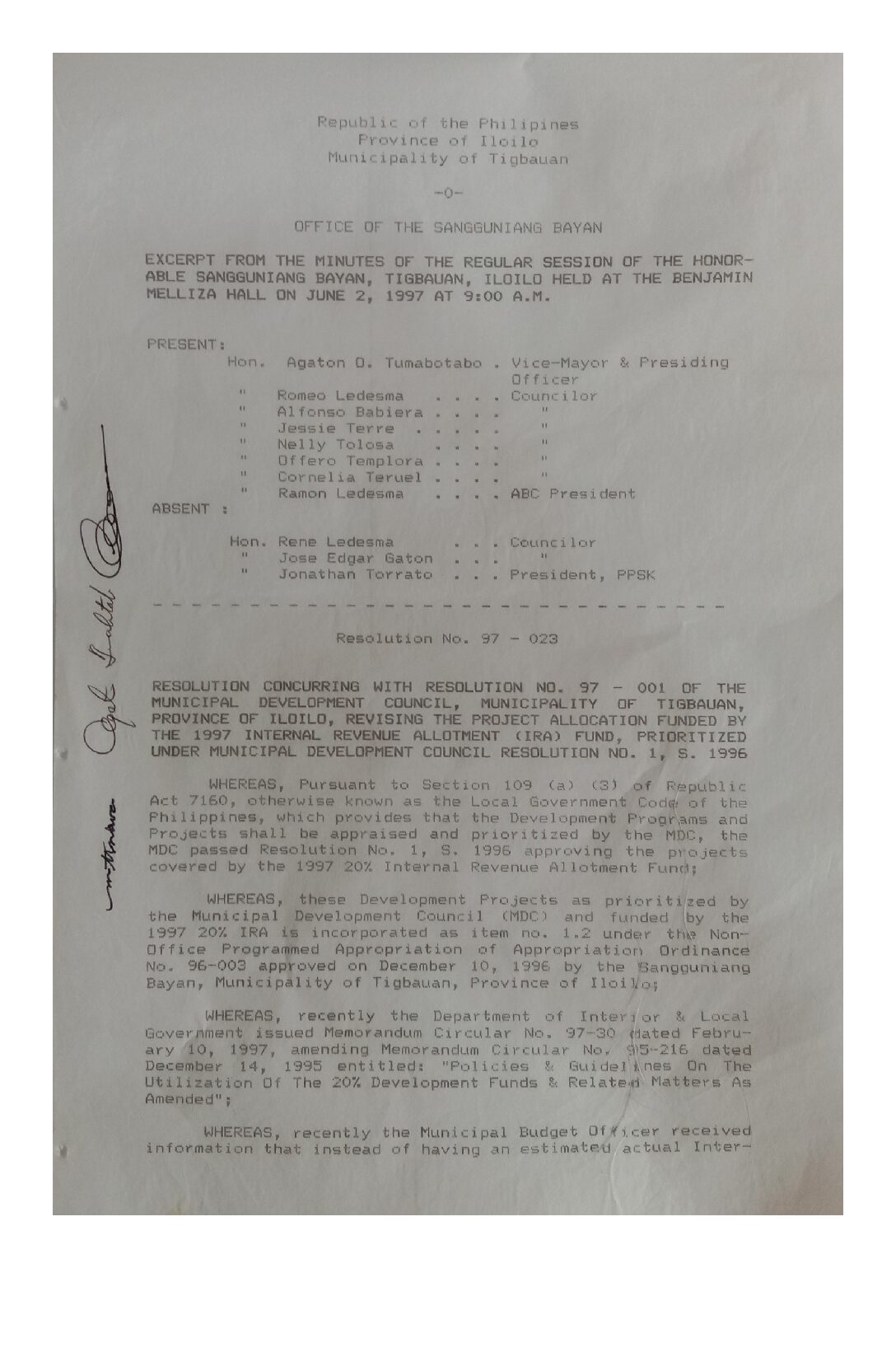 Resolution No. 97-023