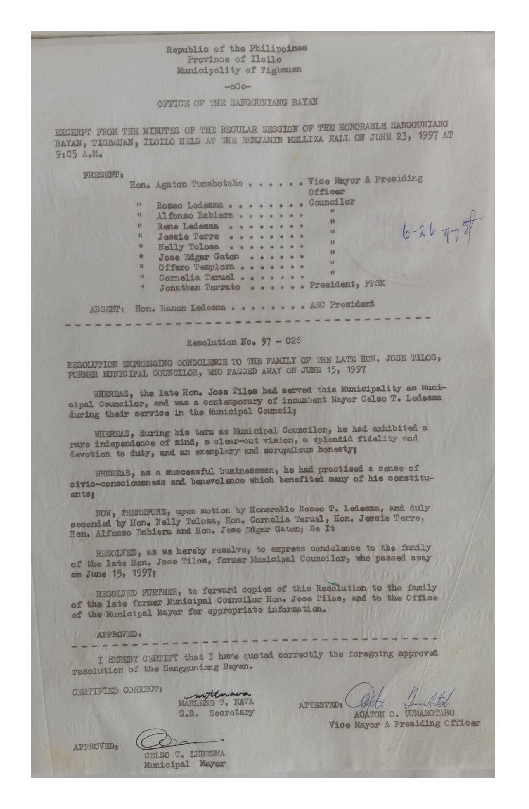 Resolution No. 97-026