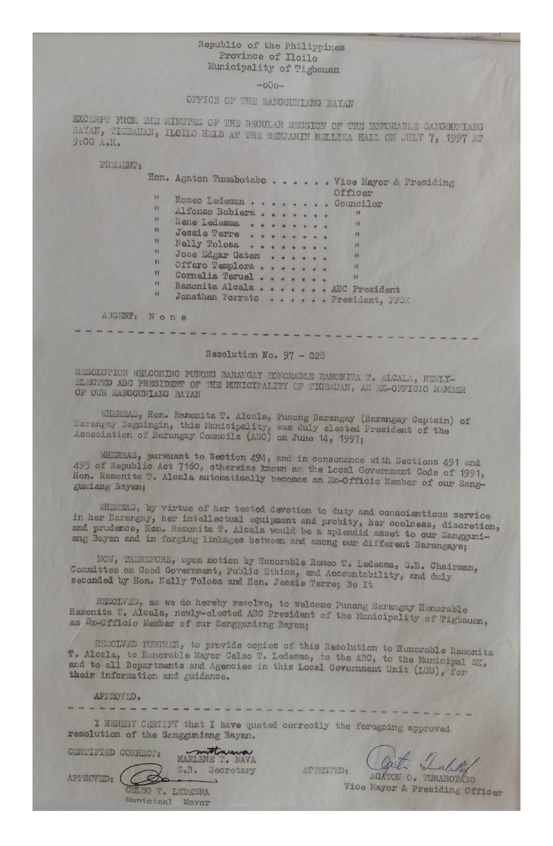 Resolution No. 97-028