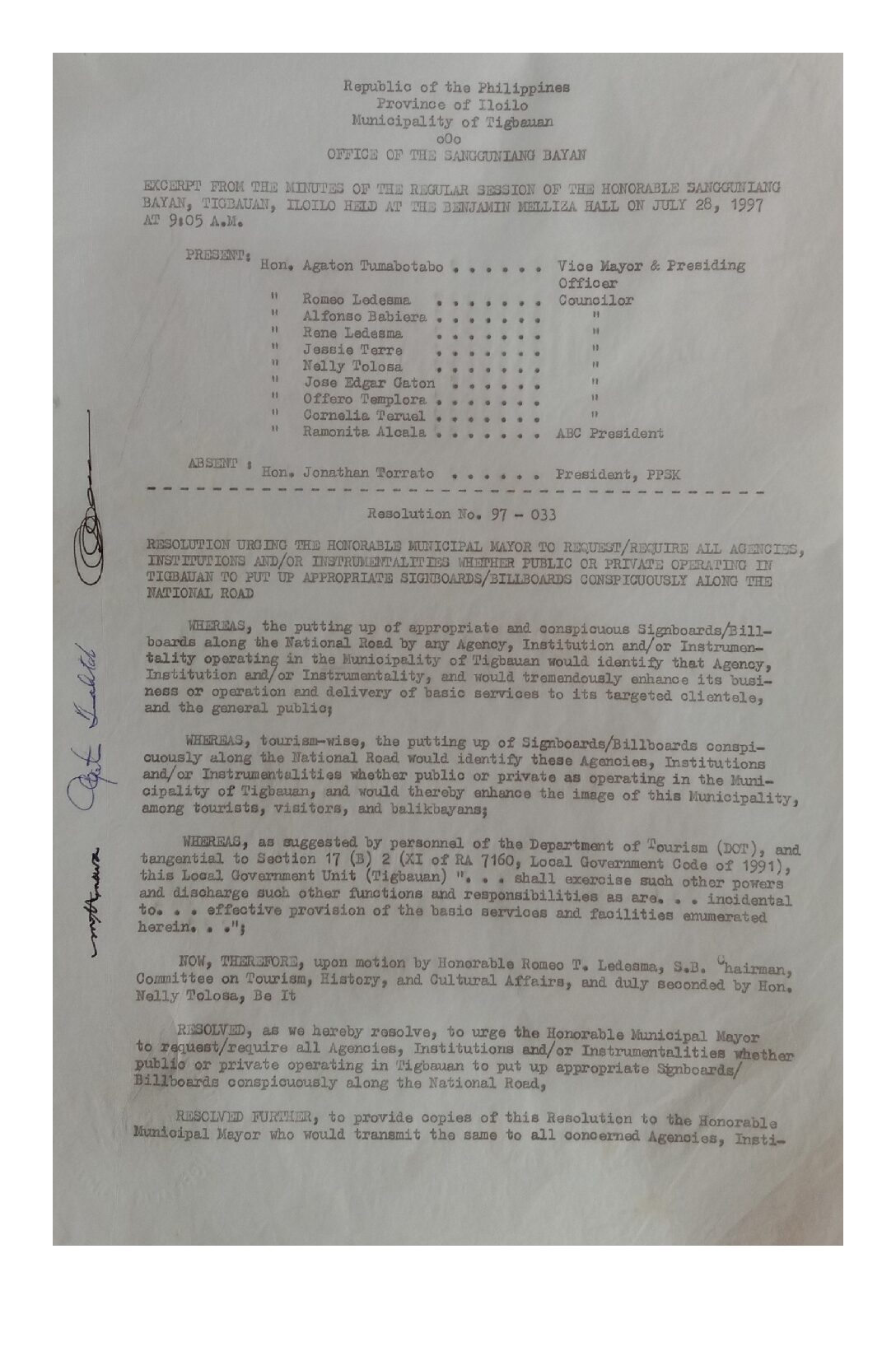 Resolution No. 97-033